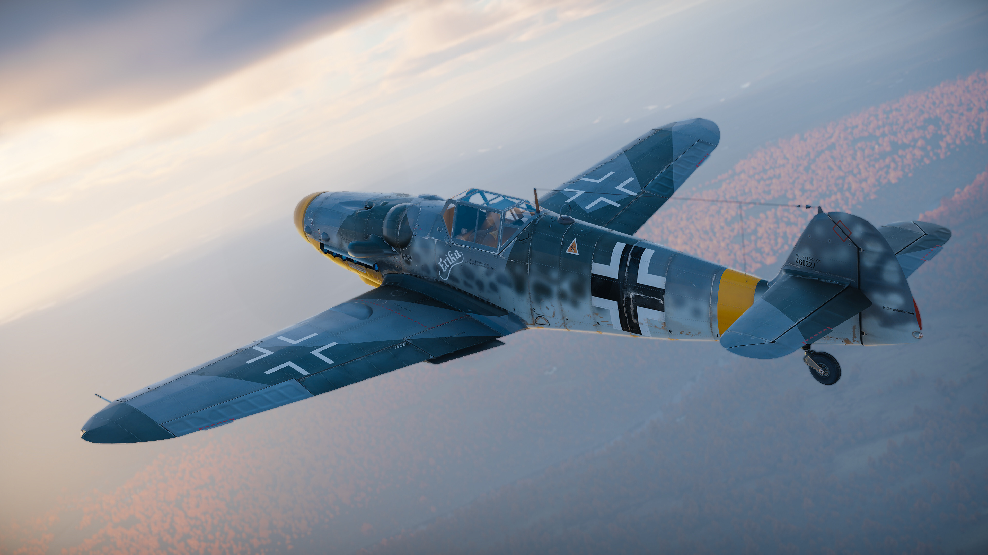 A personal inscription of Hans "Waldi" Waldmann, 6./JG 52 (6th Squadron of the 52nd Fighter Wing), Luftwaffe. Hans joined JG 52 as a sergeant on the 21st of August 1942 flying the Bf 109 G-2. He achieved his first victory only weeks later on the 7th of September, and less than a year later had already tallied 50 aerial victories. In total, he would achieve 125 victories while part of JG 52, before transitioning to JG 7 and the Me 262 in the final year of the war. Hans painted several markings on his aircraft over his career, one of the rarest and least documented was the inscription "Erika”; the name of his girlfriend. It was painted at an angle under the cockpit on the port side of his Bf 109 G-6 during the tail end of his time with JG 52.