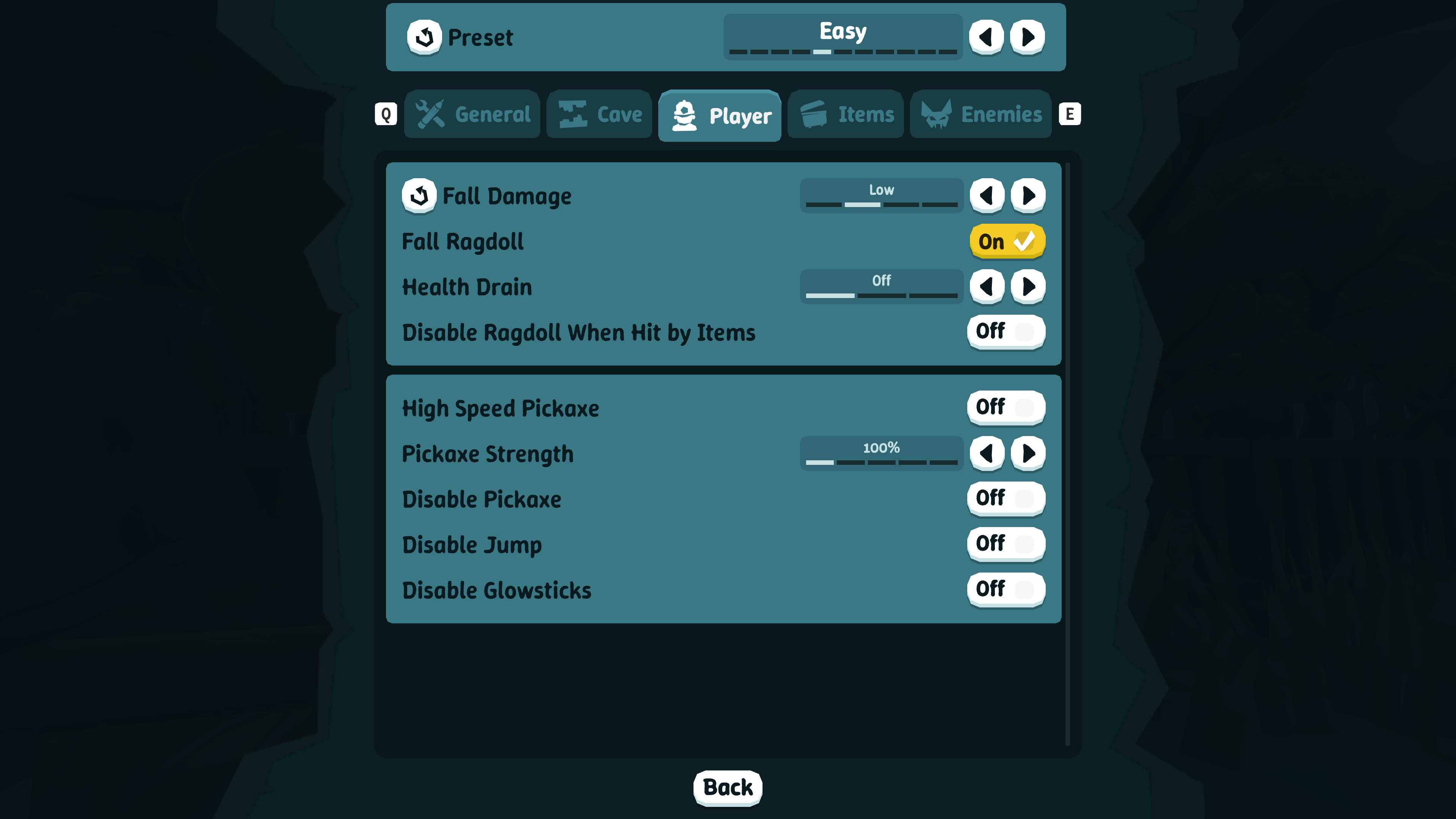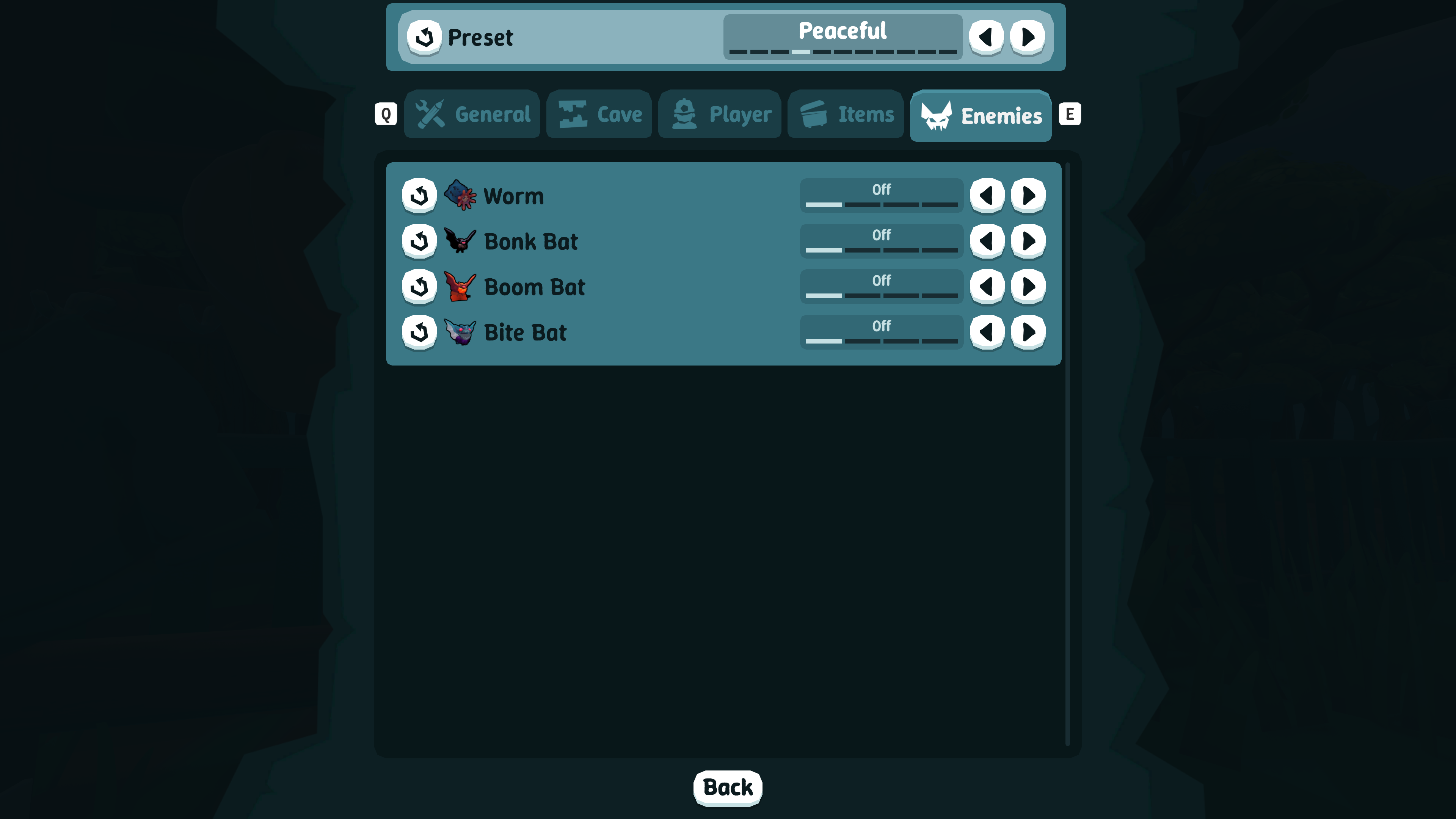 Peaceful - disable all enemies (does not disable players lol)