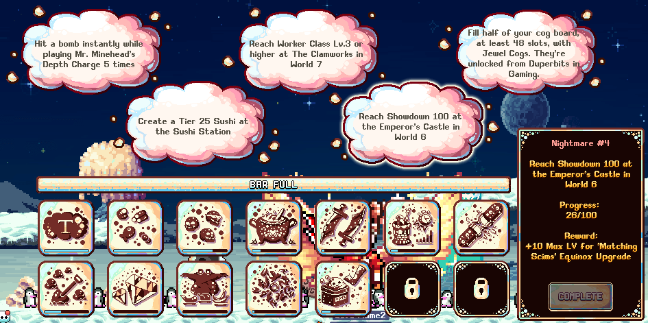 • The final Equinox Dream has changed, requiring 100 Killroy kills on 40 different monsters, not all 80 monsters from W1~6.