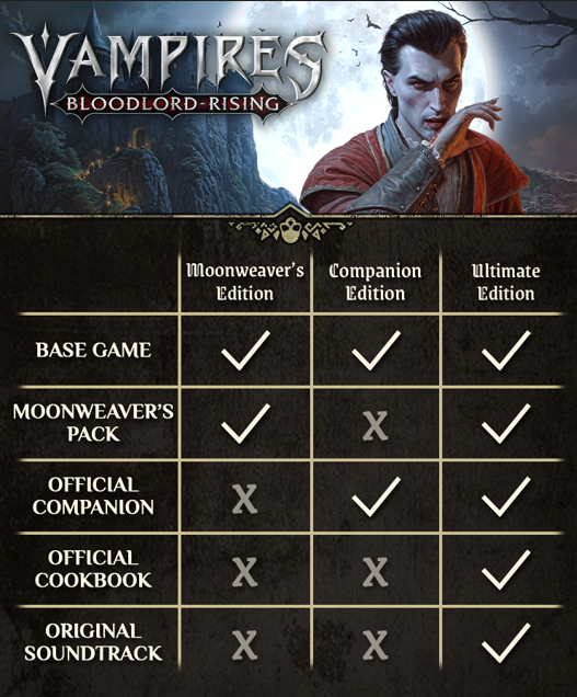 It's time to rule the night, Bloodlord!Today is a big day for our team. After years of ideas, prototypes, late nights, and countless iterations, we are finally ready. Vampires: Bloodlord Rising is available in early access on the Steam store!To show our appreciation, the game will be available at a special discounted price for the first 14 days of Early Access. This is our way of saying thank you for supporting us early and for being part of the development journey from the start.If you’d like to support us even further, you can do so by picking up one of the game’s special editions. You can choose between the Moonweavers Edition, Companion Edition, and Ultimate Edition.With the Moonweavers Pack, you’ll start the game with an additional outfit set for both Hunter and Aristocrat forms.You can compare all the game editions below.This is only the beginning of the journey. There’s still so much we want to add, improve, and explore, and your voice and support will help shape the future of the game. For now, step into the night, claim your throne, and enjoy the game. More updates are coming soon.https://store.steampowered.com/app/2191500/Vampires_Bloodlord_Rising/