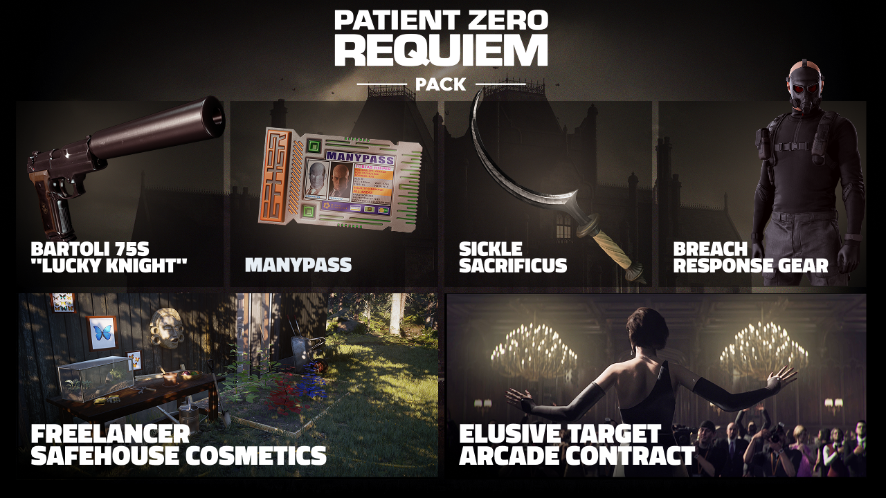 Agents,your new mission now live. A new formidable foe awaits 47 in our latest Elusive Target mission: Lilith Devereux – played by the one and only Milla Jovovich. Cold, calm and calculated, the incoming CEO of Ether Biotech Corporation will go head-to-head with 47 - and pose not only potentially the biggest threat yet to our master of assassination, but also to mankind itself! https://store.steampowered.com/app/1847520/HITMAN_WOA_Free_Demo_ft_Patient_Zero_Requiem/HITMAN - Patch Notes 3.260.1 With this new Elusive Target also a new patch arrives for all platforms with several bug fixes and a small update to Cross-Progression. For a full rundown on implemented fixes and improvements follow this LINK.SEASON OF PATIENT ZERO REQUIEM ROADMAP In addition to the new Elusive Target, we will also welcome a new themed DLC pack (see below), a new roadmap with new challenges, ET re-runs, IOI Account rewards, Twitch Drops and more. Enjoy the new content roadmap for the Season of Patient Zero Requiem. NOTE: There can be a delay of up to 24 hours before IOI Account rewards may appear in your account after playing the mission. THE PATIENT ZERO REQUIEM PACK IS LIVEThe Patient Zero Requiem Pack includes: • Breach Response Gear - A tactical, gloved, all-black ensemble complete with padded compression shirt, heavy boots, and a fear-inducing gas mask. • The Bartoli 75S “Lucky Knight” - A customised version of the Bartoli 75S handgun. Features weighted, recoil-absorbing side panel inserts, and a magazine capacity of 13 bullets. Lucky for the wielder, not so lucky for those in its crosshairs. • The Sickle Sacrificus o An ornate sickle traditionally used for sacrifices. The handle is made from carved wood and ivory with gold beads for flair. The blade is shaped like a crescent moon, possibly alluding to when the sacrifices are to be made. • Manypass - With this, you won't need to divulge your business. Just flash it and everyone will know you belong. Well, until you run out. Simply insert a Manypass into a keycard reader to bypass the lock. • A set of four Freelancer Safehouse cosmetics items, inspired by the Elusive Target mission • The Contagion - a two-level Arcade contract featuring Milla Jovovich. https://store.steampowered.com/app/4328240/HITMAN_3__Patient_Zero_Requiem_Pack/?curator_clanid=41819667Good luck. We will leave you to prepare.