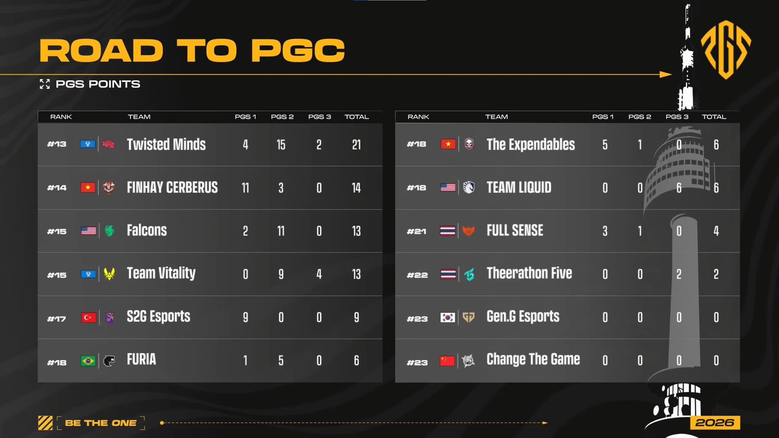 The PGS Points from all three series have now been finalized. These points will count toward the annual PGS Points standings and will have a direct impact on qualification for the Esports World Cup (EWC) and direct qualification for the PUBG Global Championship (PGC).