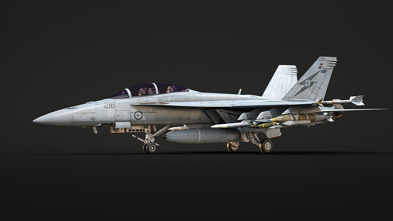 The two-seater version of the famous Super Hornet arrives in War Thunder! This time, the F/A-18F from the Royal Australian Air Force with AIM-120D missiles and a huge arsenal against ground targets!F/A-18F: A Jet Fighter/Naval Aircraft for Great Britain (Australia) at Rank IX! At a glance:Twin-Seat layoutWide range of external hardpoints12 AIM-120D AMRAAMs Vehicle HistoryDeveloped in tandem with the F/A-18E Super Hornet, the F model was the twin-seat variant much like the F/A-18B/D was to the A/C. Powered by the same Two F414-GE-400 turbofans as the E model, the F variant allowed for a variety of flexible mission roles operationally, as well as crew familiarisation and training. A Royal Australian Air Force requirement came into being with the need to replace the F-111 fleet before the F-35 would become operational. In 2007, it was announced that 24 Block II F/A-18F Super Hornets would be purchased for the RAAF. With the F/A-18A already in service, this was a natural step to take. The first aircraft would be delivered in 2010 to No.1 Squadron, with all deliveries completed and the type fully operational by 2012. The Australian variants include the AN/APG-79 AESA radar package and capabilities for most integrated Super Hornet Weaponry like the AIM-120, AIM-9, JDAM and LJDAM. The F/A-18F would later be complemented by the EA-18G Growler in RAAF service. Introducing the Australian Super Hornet!G’day mates! Today, we’ll be taking a look at the Royal Australian Air Force’s F/A-18F Super Hornet, the twin-seat modification of the famous “Rhino” (or Superbug, depending on who you ask)! Armed to the teeth with a massive loadout of AMRAAMs for aerial engagements or suitably decked out for close air support with a plethora of guided ordinance, this aircraft provides a veritable toolbox for you to use within the British aviation tree! Pilots already familiar with the F/A-18E won’t be too surprised to learn that its slightly more spacious counterpart retains the same air-to-air capabilities of 12 x AIM-120C-5 / D AMRAAMs as its maximum loadout. Coupled with the AN/APG-79 AESA radar, the F/A-18F is a significant step up from the previous AF/A-18A Late and Sea Harrier FA.2 you would be stepping up from in the British Naval line. Much like those aircraft however, the “Rhino” is not something you particularly want to be getting into any dogfights or close range engagements with. While you do have AIM-9M IR missiles and a 20 mm M61A2 cannon to fall back on, this aircraft is best kept at ranges where it can launch off its AMRAAM battery and keep a distance from enemy fighters. Make best use of your AESA radar from ranges where it provides the best situational awareness and targeting. Air-to-ground however is more where the F/A-18F shines. Complementing the existing British lineups, this Super Hornet offers a massive upgrade over the earlier Australian F/A-18A Late in terms of the sheer number of hardpoints and options. Everything from JDAM-ERs, GBU-10, 12, 16, 24, 31, 38 and 62, among many other guided options are available. Along with the stalwart options like AGM-65 and many conventional bombs for when the occasion calls for it. Naturally, the F/A-18F also comes with all the modern tools you would expect for a platform from this era. Great situational awareness thanks to its RWR system and good targeting capabilities with its helmet-mounted display. Much like its single seat counterpart, the F/A-18F comes with 120 countermeasures. A respectable amount, but by no means the most at this rank. So you’ll need to be selective about how you best configure and apply them in battles. Well thats Hooroo for now! We hope you enjoyed a look at this new gem from down under. It will not be long before you can add the F/A-18F to your hangars and join your rosters within the British tree, coming in the next major update! Until the next one. Please note that this vehicle’s characteristics may be changed before it is added to the game.