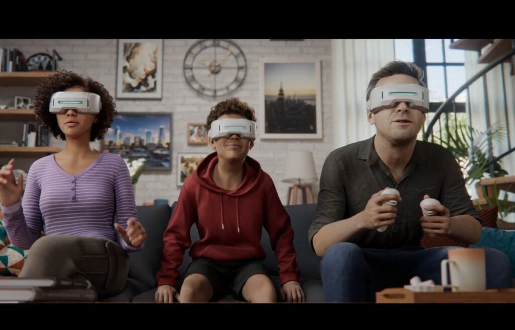 Then we see a team of soldiers in space suits lands on a zero gravity surface “for infil.” The team gets ambushed and shot by unseen enemies in a building. The narrator notes the strife but the “new golden age of humanity has started.”