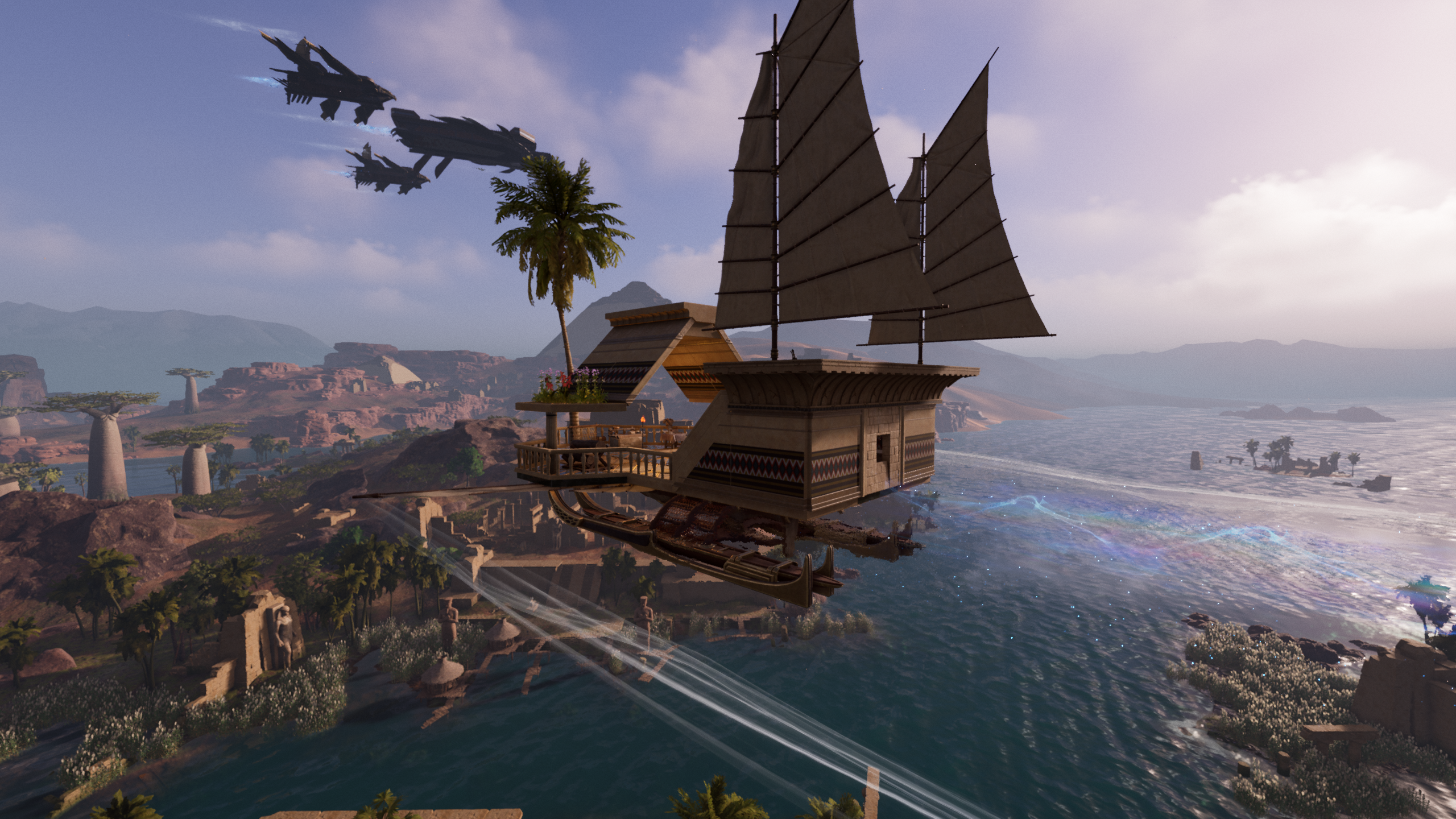 But anti-gravity engines make the seemingly impossible real—floating cities in the sky, colossal fortresses bristling with weapons, upside-down airships, and suspended pyramid ruins. Everything you see in Shifting Sands stands as proof of how glorious this technology once was.