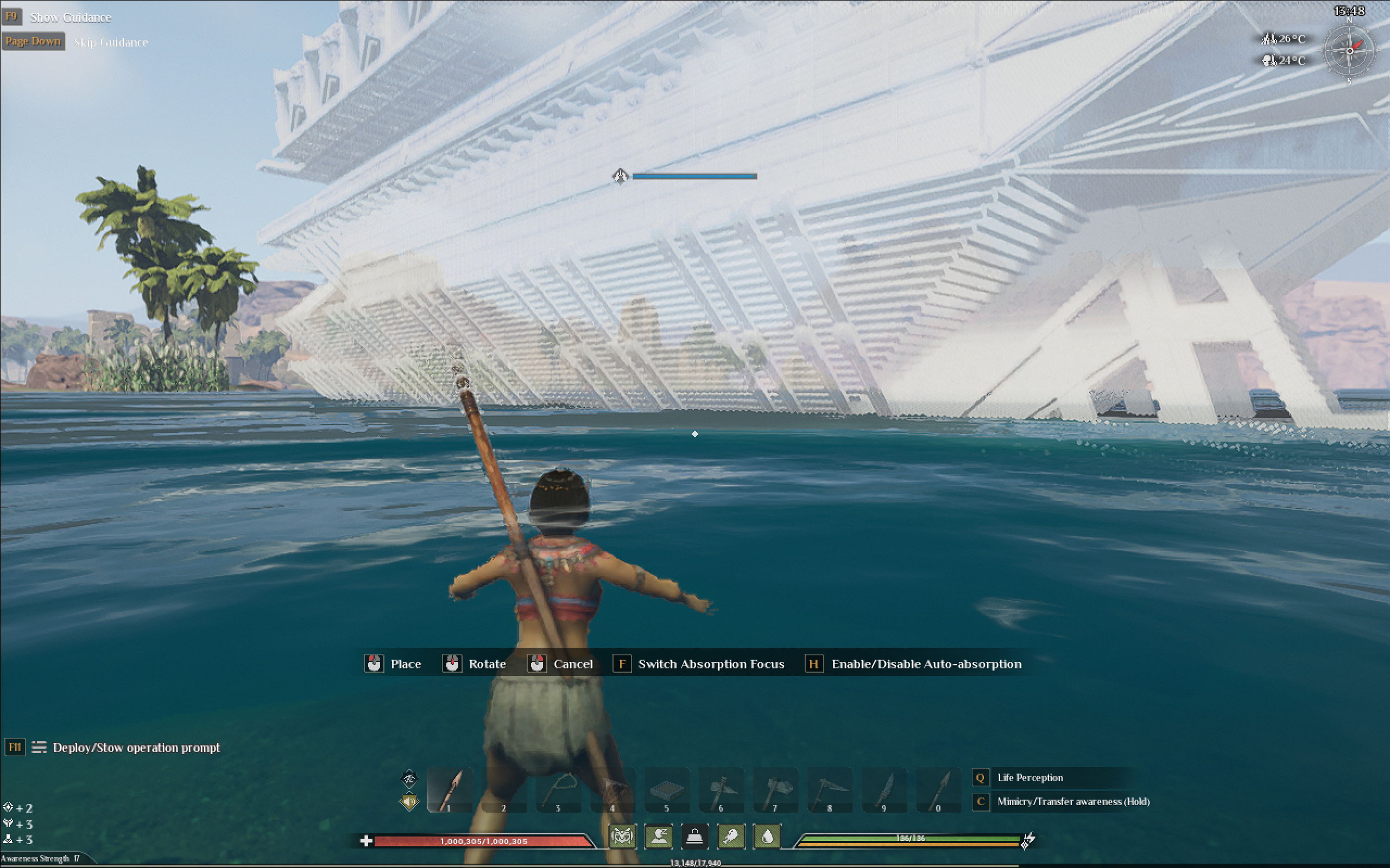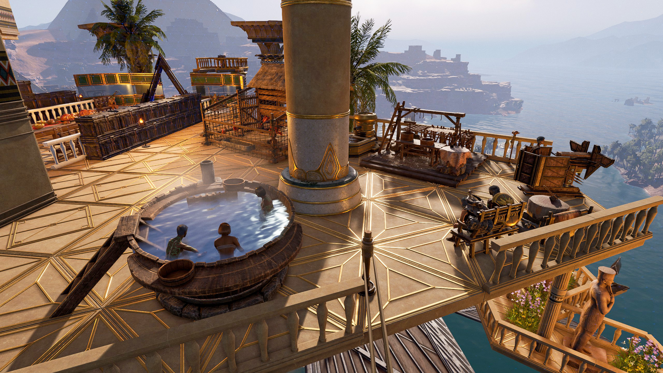 You can decorate your castle in the sky with everything from furniture carried over from the base game of Soulmask to brand-new Egyptian-style building pieces.