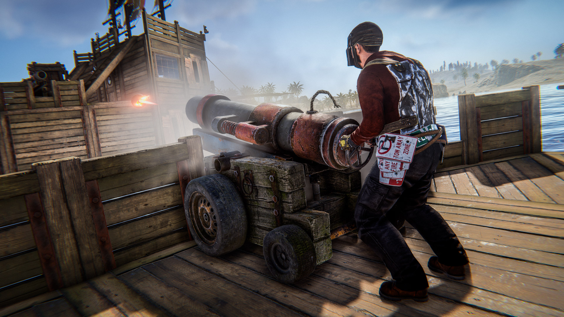 We've added a moderate amount of ADS aim sway while on player built boats, scaled by the speed of the boat. Ideally this encourages the use of cannons over traditional weapons, but doesn't entirely rule out some poorly aimed rockets and AK spray.