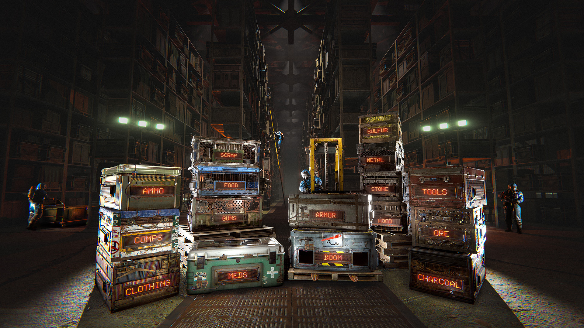 Shipping this month is the Storage Box Pack, a packed-out collection of 16 uniquely designed and labelled skins for the Large Wood Box. Featuring bespoke and beautiful designs for Ammo, Armor, Charcoal, Clothing, Components, Explosives, Food, Guns, Meds, Metal, Ore, Scrap, Stone, Sulfur, Tools and Wood.