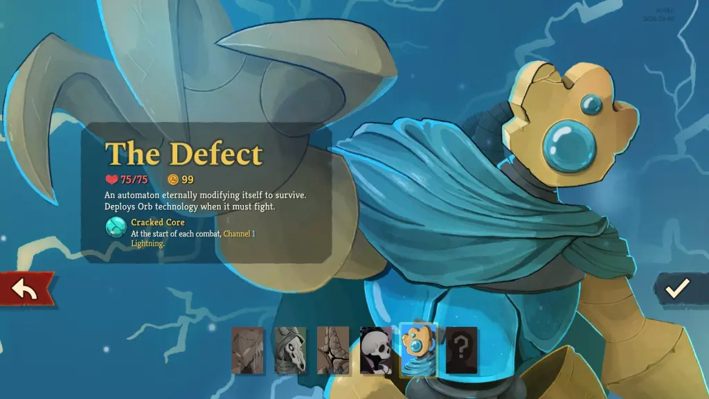 Screenshot by Destructoid The Defect is a fun character that channels the power of lightning orbs to damage his opponents. The orbs do three damage by default, but you can Evoke to deal eight damage instead. You'll always begin with one Lightnight that you get to channel at the start of a combat.My main issue with the Defect character is the overreliance on Evoke. If you don't draw cards with Evoke ability with consistency, you'll face problems later in your run. Hence, you'll largely rely on the cards you add to your deck on your run, with priority being getting Evoke options.