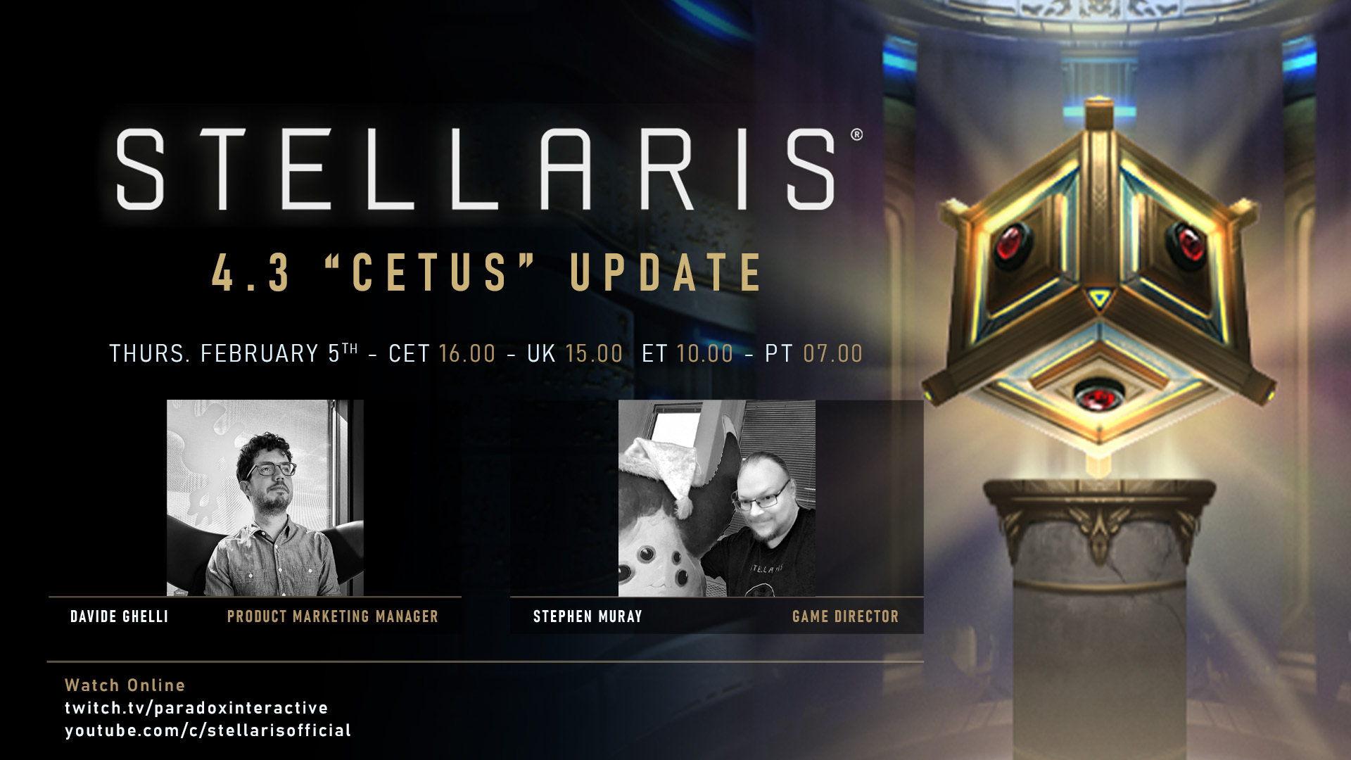 Greetings, spacefarers!Today we’ll be looking at the impact the changes of the 4.3 ‘Cetus’ Open Beta has had on performance, with graphs and a comparison video.As a reminder - during the Cetus cycle, dev diaries will be on a once-every-two-week cadence.PerformanceBack in 3.14, we had hit the limits on how far we could go with optimization with many of the systems of Stellaris. In the 4.0 update, we changed planet and pop systems to one that would be a better foundation for future performance improvements. Alongside the design changes to reduce ship counts and balance the economy, with 4.3 we’re finally able to deliver some of those promised improvements.We’ve been running side-by-side comparisons of different versions of Stellaris, and while the major differences in versions means we can’t do direct comparisons, we tried to minimize divergence. Today we’ll be showing off 3.14.1592653 vs. 4.3, with Default settings - except that it’s on a Huge Galaxy, Ensign Difficulty, with the Prethoryn Scourge as the crisis. Autosaves were disabled on this run so they wouldn’t interfere with the recording. Both of these were run on the same higher end Windows machine, an i9-14900K with 32 GB of ram and a GeForce RTX 3060, and as some of these changes are hardware dependent we’re very interested in hearing about your performance experiences in the Cetus Open Beta.Here’s a chart looking at seconds per year, generated from .tsv’s using the [c]-gamestatetimer[/c] command line parameter.-gamestatetimer? Explain.If you add [c]-gamestatetimer[/c] to the launch options of Stellaris, the game will generate a game state timer log in your logs directory.My command line parameters.This is a tab separated text file that looks something like this:[c]Game Date Time Unit Seconds[/c][c]2200.01.01 Micro 0.000611[/c][c]2200.01.01 Micro 0.001599[/c][c]2200.01.01 Micro 0.006324[/c][c]2200.01.01 Micro 0.008577[/c][c]2200.01.01 Micro 0.000912[/c][c]2200.01.01 Micro 0.002078[/c][c]2200.01.01 Micro 0.000530[/c][c]2200.01.01 Micro 0.001898[/c][c]2200.01.02 Micro 0.073470[/c][c]2200.01.02 Micro 0.003261[/c][c]2200.01.02 Micro 0.000590[/c][c]2200.01.02 Micro 0.001874[/c][c]2200.01.02 Micro 0.001394[/c][c]2200.01.02 Micro 0.011386[/c][c]2200.01.02 Micro 0.001238[/c][c]2200.01.02 Micro 0.002009[/c][c]2200.01.02 Micro 0.000521[/c][c]2200.01.02 Micro 0.001725[/c][c]2200.01.03 Micro 0.023613[/c][c]2200.01.03 Day 0.047612[/c][c]2200.01.03 Micro 0.003535[/c][c]\[...And so on for a little over 1.2 million more lines][/c]Importing this .tsv into a spreadsheet and filtering out Time Units to just show the Year entries will give you the time the year ending on that date took, just as if you had run the [c]one_year[/c] console command over and over again three hundred times.Warning: These files can get pretty big, as they record the micro-tick times, and end up at about 30 MB of text for 300 years of game tracking.The [c]-incrementalsaves[/c] launch option I have up there keeps save games at 2200, 2275, 2300, 2325, 2350, and every 50 years thereafter until 2600. We use them to look at the galaxy’s development in interesting automated runs.[c]-loadrandomseed[/c] is used to reduce game divergence.The 3.14 build started at 30.52 seconds per year, while our 4.3 build started faster than a month per second at 11.54. It took until 2269 for 4.3 to slow down to 3.14’s starting time, by which point 3.14 was taking 44.63 seconds per year.The 4.3 game ended at 2500.01.01, we ended the 3.14 game halfway through 2506 because at that point it was already nearly two hours longer than the 4.3 video.Here’s a chart showing the cumulative elapsed time it took each game to reach the specified game years.We’re pretty happy with these improvements, but we’re also not quite done yet.We’re updating the Cetus Open Beta today with a branch that has some more experimental performance updates. As this branch includes experimental changes, we’d like to remind people that we have a Cetus Rollback branch that uses last week’s build. In my internal tests, this build was about 4% faster than the main Cetus Open Beta, but we think we’re going to be able to squeeze a little more out of it.Three games from an identical save, same random seed, i7-13700k w/32 GB RAM, RTX 3060 Ti 4.3 ‘Cetus’ Open Beta Patch Notes 2026-02-06Here are the preliminary release notes for tomorrow’s Open Beta update:BalanceChanged the scaling of Imperious ArchitectureIncreased the maximum damage scaling for weapons that increase damage based on target ship size.Reduced the effect that Councilor skill levels has on Agenda speed.Loyalty Circuits has been replaced by Compliance Filters as an auto-modding trait. This means that Augmentation Bazaars can pick it on game start as well.The augmentation center now provided 400 jobs for Driven AssimilatorsAugmentor jobs for regular empires now provide flat bonus pop growth, not a multiplier to existing pop growth.Synthetic Fertility now starts with Powered ExoskeletonsSignificantly