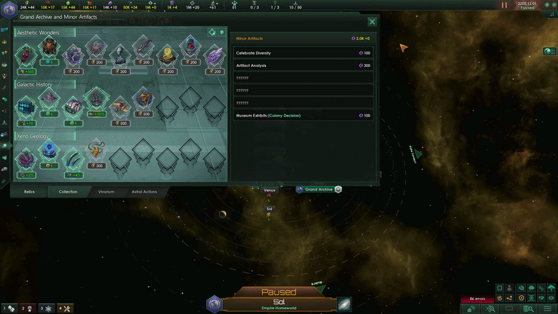 Increased Minor Artifact storage cap to 2000 (was 1000) and the Archaeo-Engineering bonus to 3000 (was 2000)