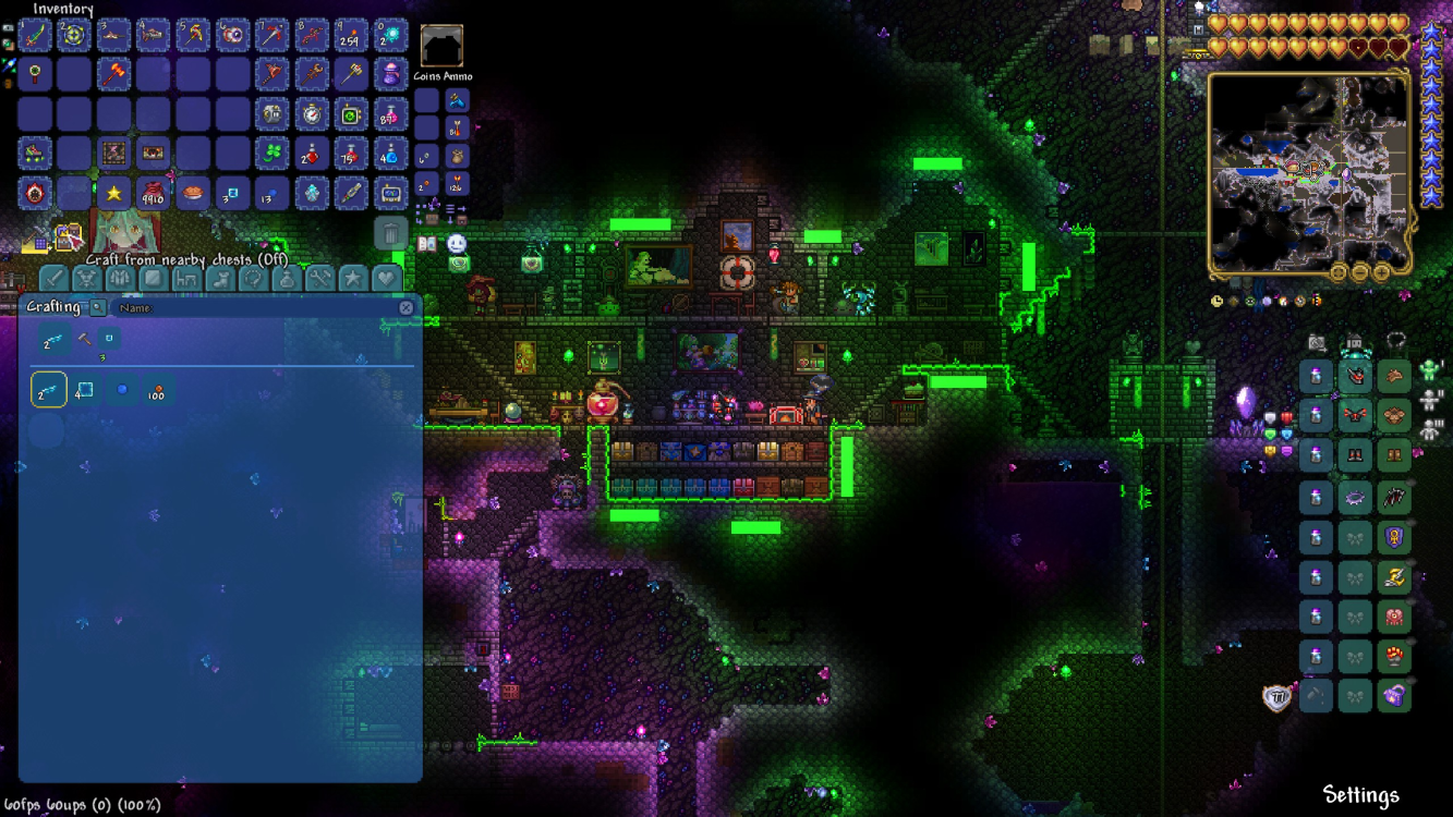 Oh, and while we were at it, we made some improvements to the way that crafting from chests works - you can now automatically use materials from nearby chests to craft items. No need to put them in your inventory first - or even open any chests first! With some proper base building, this should put all of your materials at your fingertips automatically. If that gets overwhelming, just toggle it off in the crafting menu. Coupled with the powerful new crafting interface, crafting in Terraria has never been better!