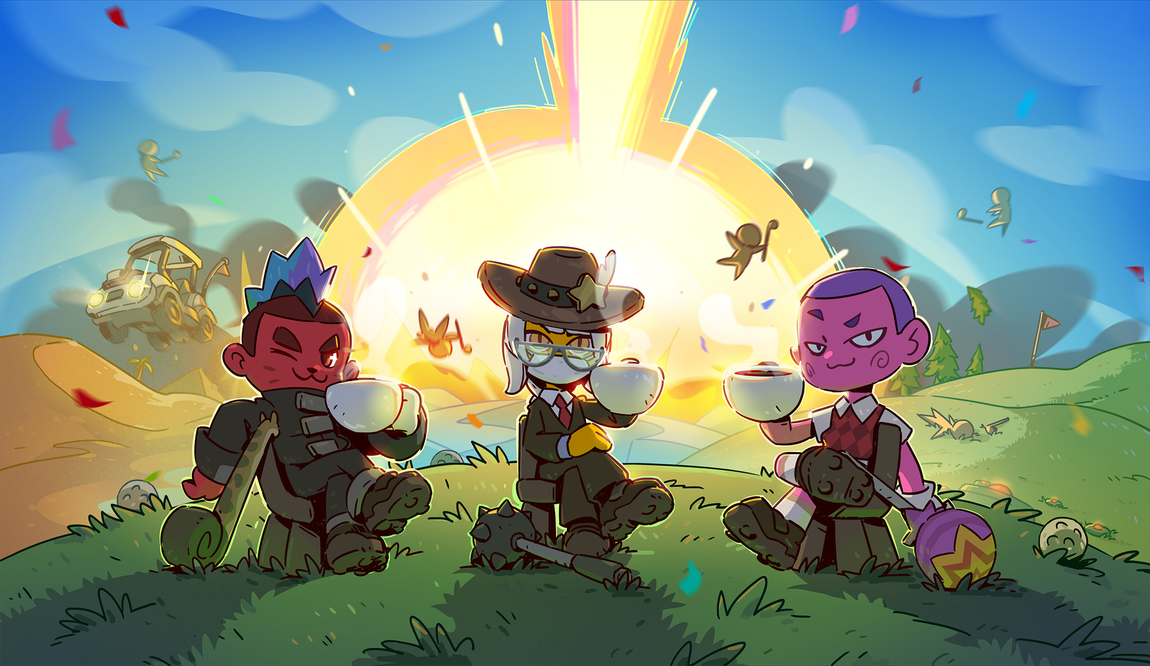 Woah! Hey! Hello! Super Battle Golf has sold over 1 million copies since we launched on February 19th! That is way over 9000. So many friendships ended, so many golf carts sent flying into the sky, so many balls shot away from the hole right as it's about to score.