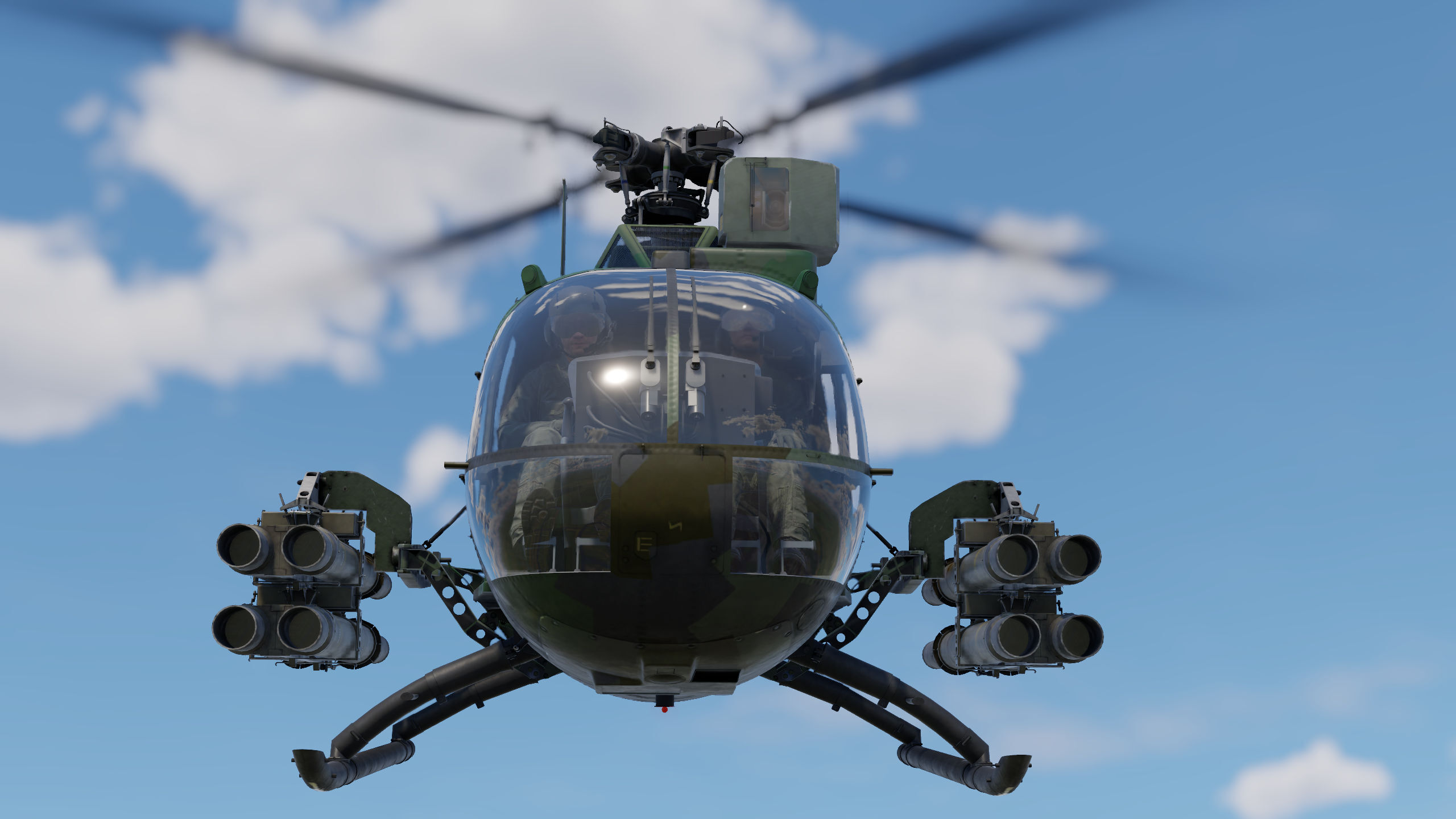 The BO 105 CB-2 is an experimental version of the Bo 105, developed for the Swedish Army’s anti-tank helicopter competition. This version features improved optics and the American BGM-71 TOW anti-tank guided missile system. Use the helicopter’s maneuverability and compact size to evade threats and launch sudden, precise strikes against enemy armored vehicles!