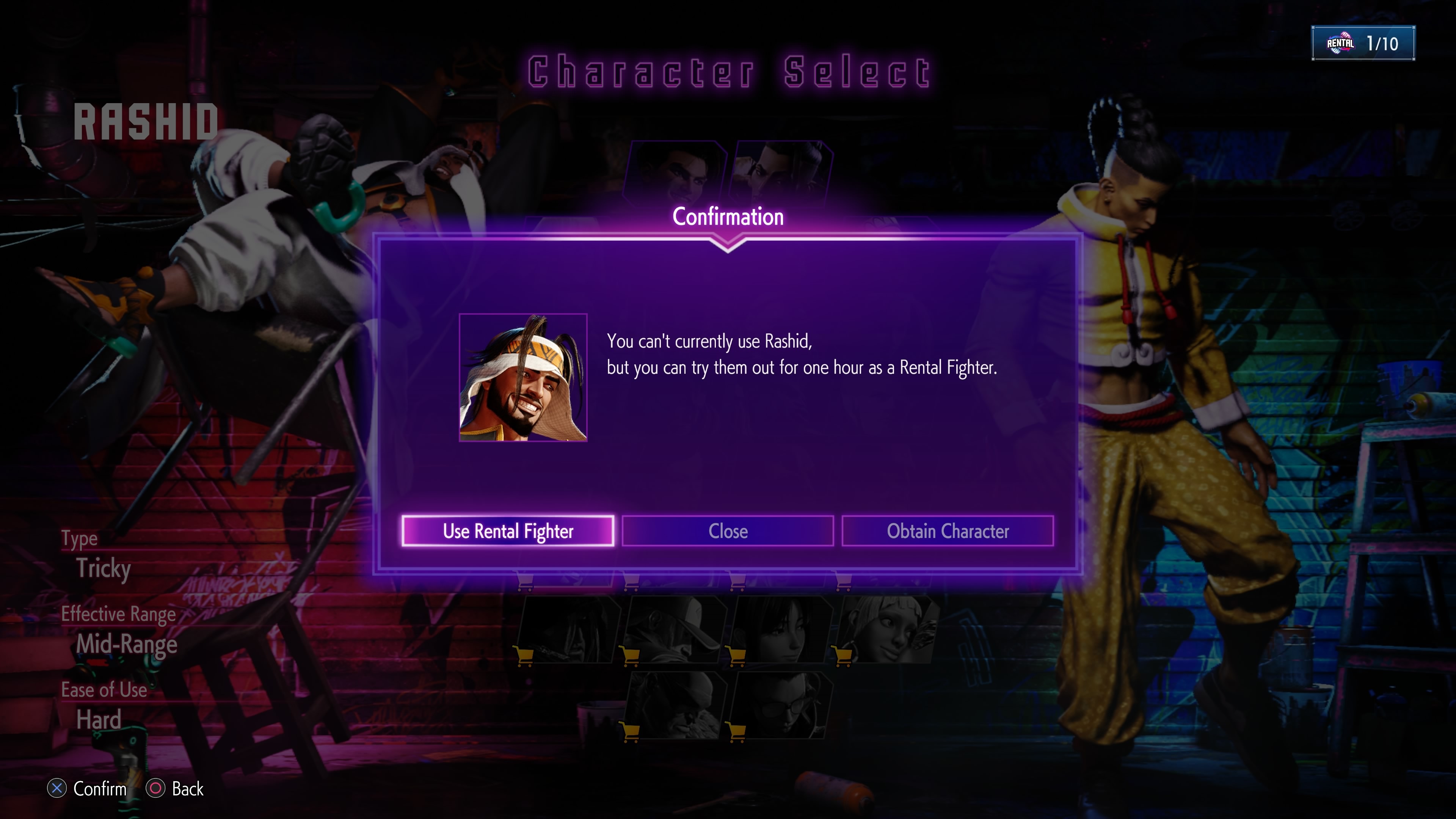 Sélectionnez "Utiliser Combattant à louer" vous permet de jouer avec le personnage choisit pendant une heure.
