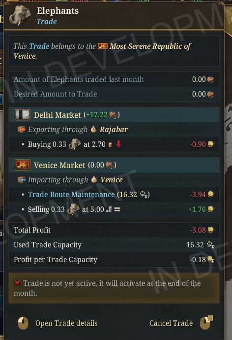The trade system has received its most comprehensive rework yet, touching everything from how routes are costed to how capacity is consumed and how automation behaves. The biggest architectural shift was replacing the old hard/soft range cap with a continuous cost curve: routes no longer get hard-blocked at a certain distance, but instead accrue a scaling path-cost penalty the further they stretch, giving players a meaningful economic tradeoff rather than an arbitrary wall. Alongside that, we've wired Maritime Presence directly into path cost calculations, a strong naval presence along a route now reduces its transport cost, making sea-power feel genuinely useful for trade rather than just a defensive stat.