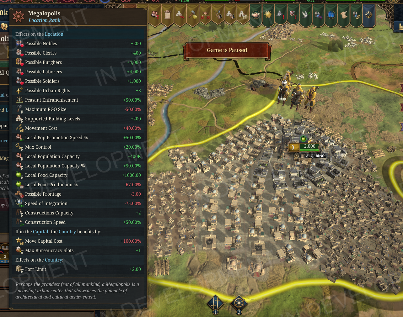 Due to the high cost and high requirements, only a small handful of cities will ever be able to become Megalopolises throughout the game, keeping it reserved for only the most special locations in the world.