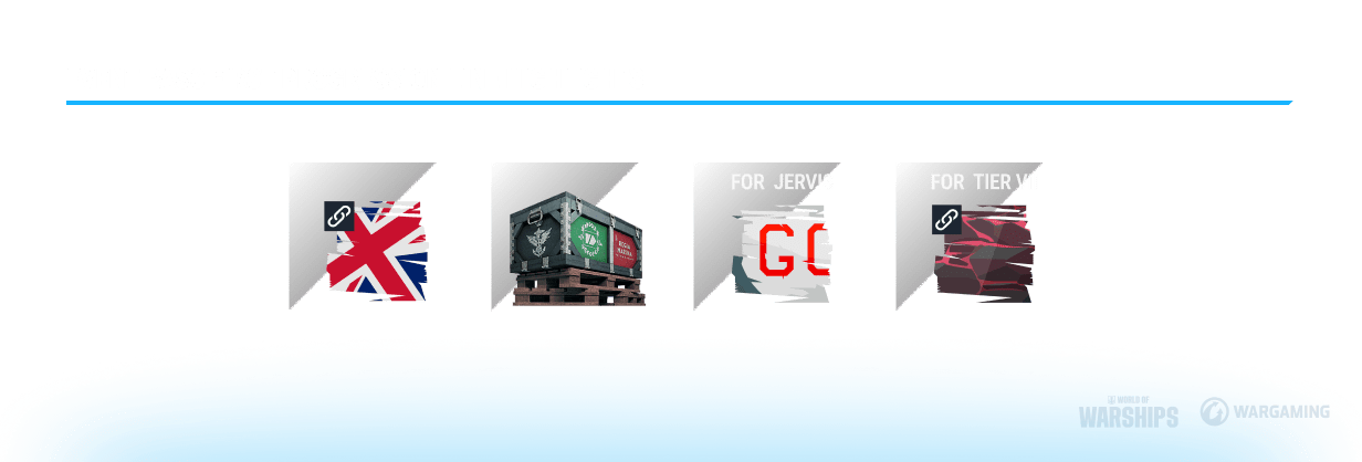 - First progression line: Union Jack permanent camouflage, "Resolute and Rapid" container, Force of Liberation camouflage for Jervis, and the glowing Ember Core permanent camouflage for Tier VII ships as the final reward.