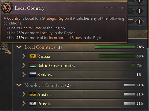 As a non-local country, you may gain involvement in a region by signing treaties with countries that are considered local there. ‘