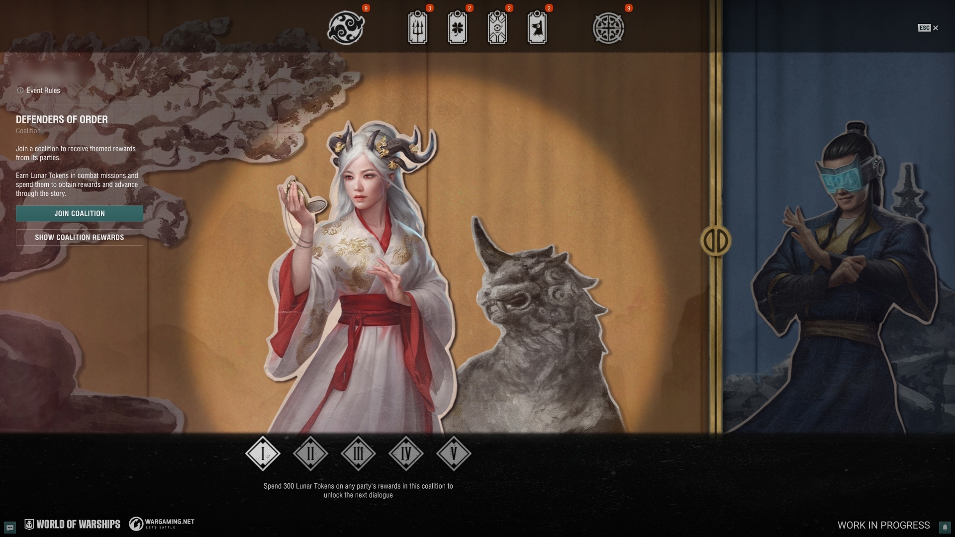 - Lunar New Year Celebrations: Pick a side—Chaos or Order—and advance through different progress lines, spending Lunar Tokens that you earn along the way and unlocking special rewards. Among them are themed ships—including seven new ones! A festive calendar will also grant you login rewards for more than 2 weeks in addition to the usual daily login rewards!