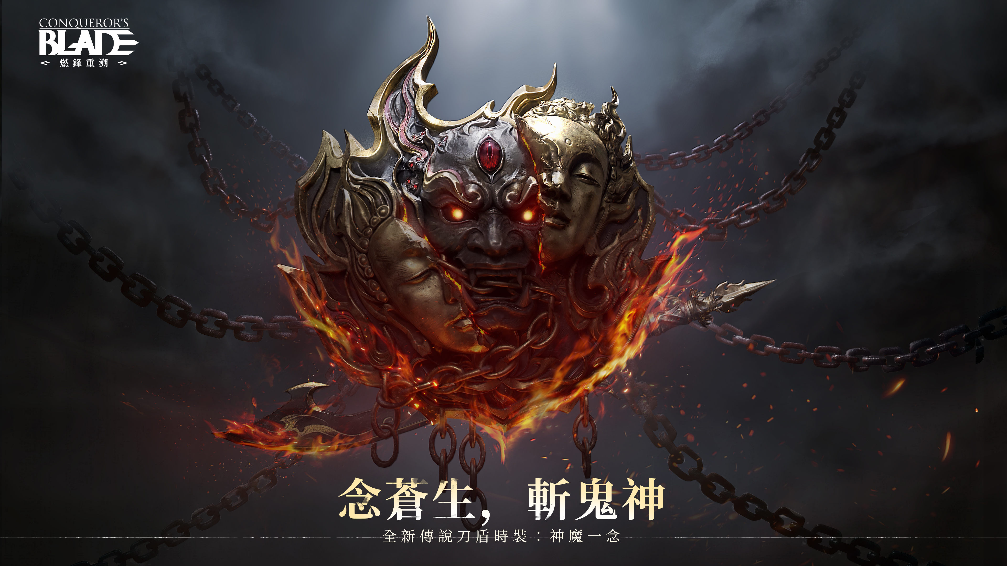 一念成神,一念化魔神魔從非對立,而是人心兩面——念善,則慈悲普照;念惡,則殺伐四起。全新傳說刀盾時裝「神魔一念」,4 月 29 日 上線戰場。善惡同源 · 雙面共生盾分雙相:一側刻慈顏,閉目低眉,鎮壓萬千罪孽;一側鑄怒相,赤目獠牙,噬盡八方業火。兩面以鎖鏈相連,善惡共生。刃藏殺機:古鋒冷冽,焰紋流轉,無聲殺意已在沉寂中蟄伏。當鬼神亂舞、虛妄橫行,持此刀盾者立於蒼生之前:怒念化劫,烈焰焚天。封印若碎,便以修羅之姿,斬盡這世間一切錯謬!念蒼生,斬鬼神。「神魔一念」· 4 月 29 日 上線戰場。