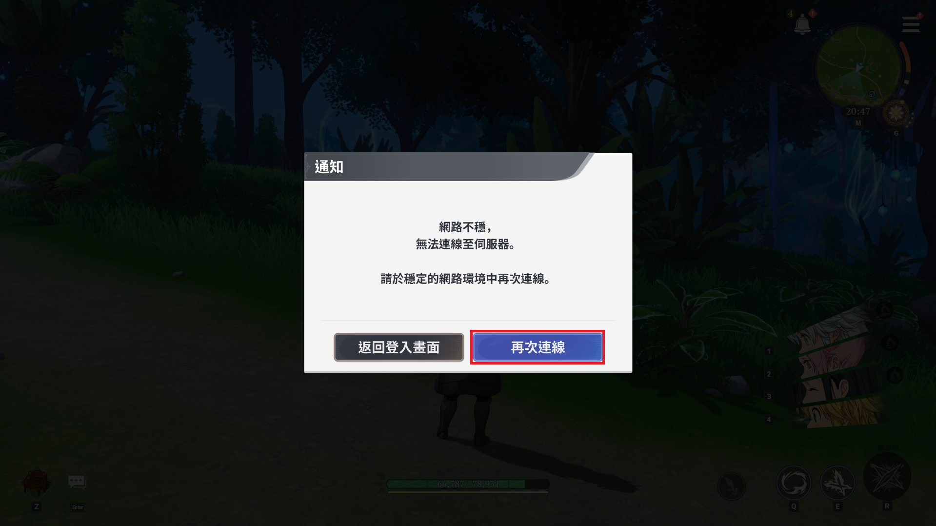- 該提示彈窗並非實際的網路異常,而是暫時性問題,選擇\[再次連線]後即可正常進行