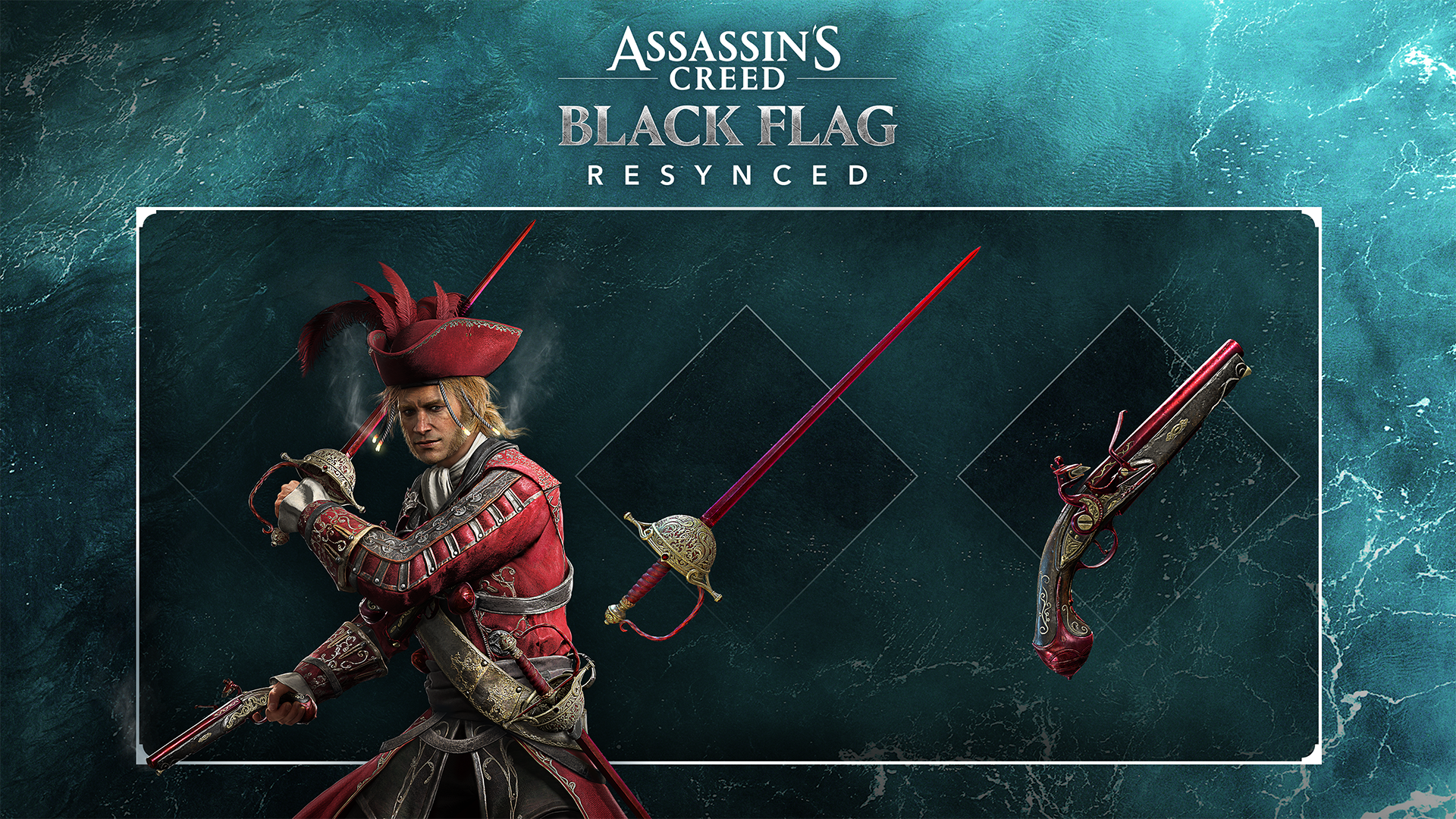 最後,只要在上市前預購《刺客教條:黑旗 同步重置》的「標準版」或「豪華版」,即可獲得「黑鬍子的深紅組合包」的數位下載資格,內含適用於愛德華且各具獨特專精效果的手槍、刀劍與服裝。
