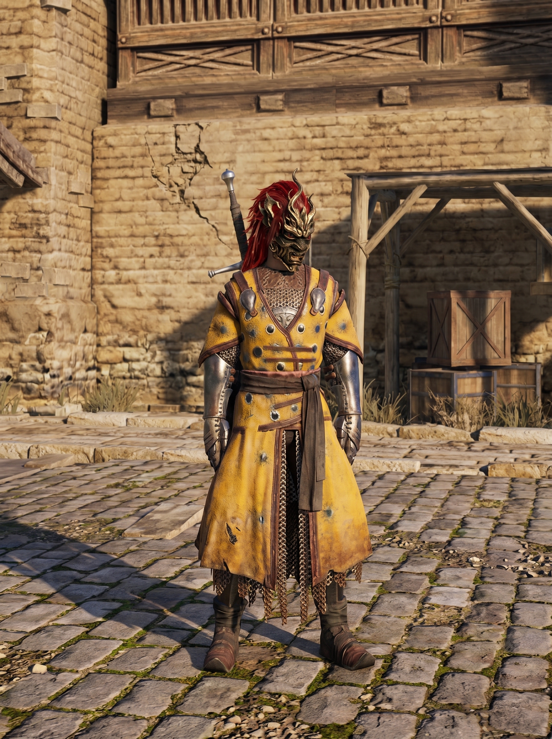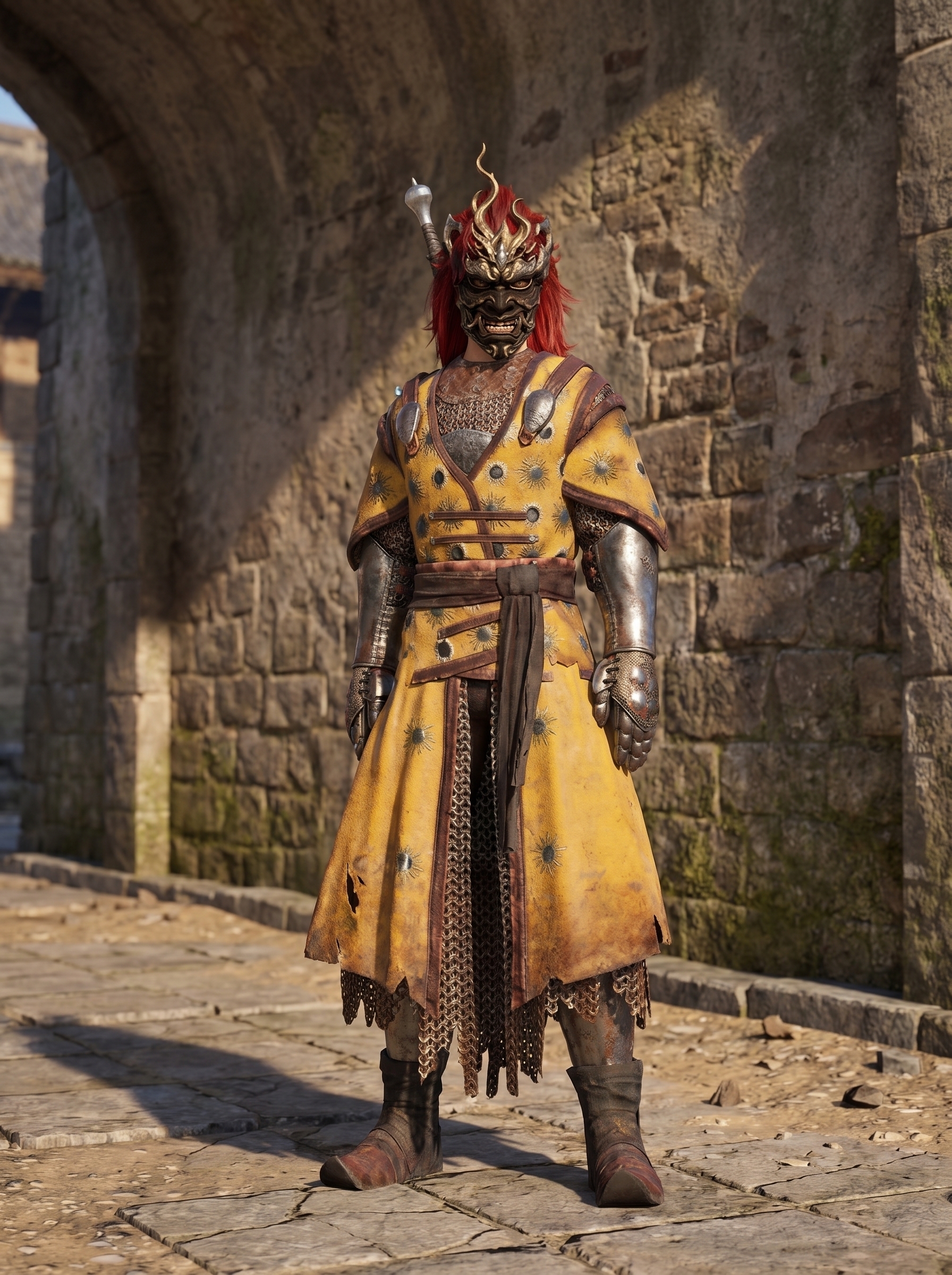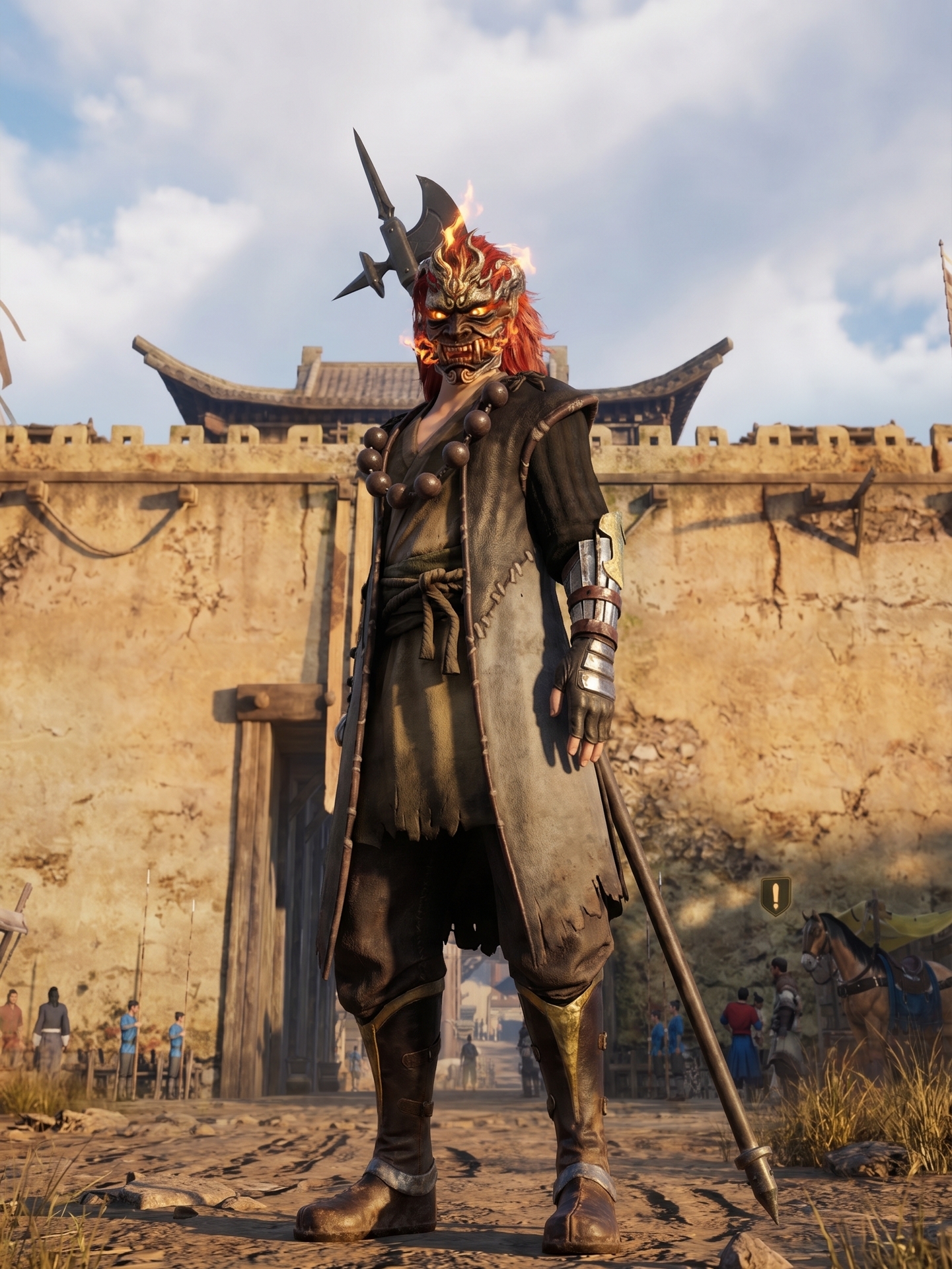 大家好,我是波波。今天為大家帶來的,是新傳說頭盔的穿搭搭配。讓我們歡迎第一位嘉賓!當一個戴著面具的男人,提著一把血紅色的刀朝你走來。他顯然不是來給你送外送的。第二位嘉賓身負變種劍,猩紅的面具和一身黃衫,如同一位技藝大成,保護財物的鏢客。不管這鏢局練的是什麼劍法,這張臉就已經足夠嚇退宵小之輩了。第三位嘉賓身著僧服,似乎拋下了對過往的一切牽掛。回頭向城頭望去,他的樣子好怪。「不戴面具如何救你,戴了面具如何愛你」我們終究會在向著城頭衝鋒的路上,一次次地倒下又站起。或許,這正是你我成為修羅的意義。