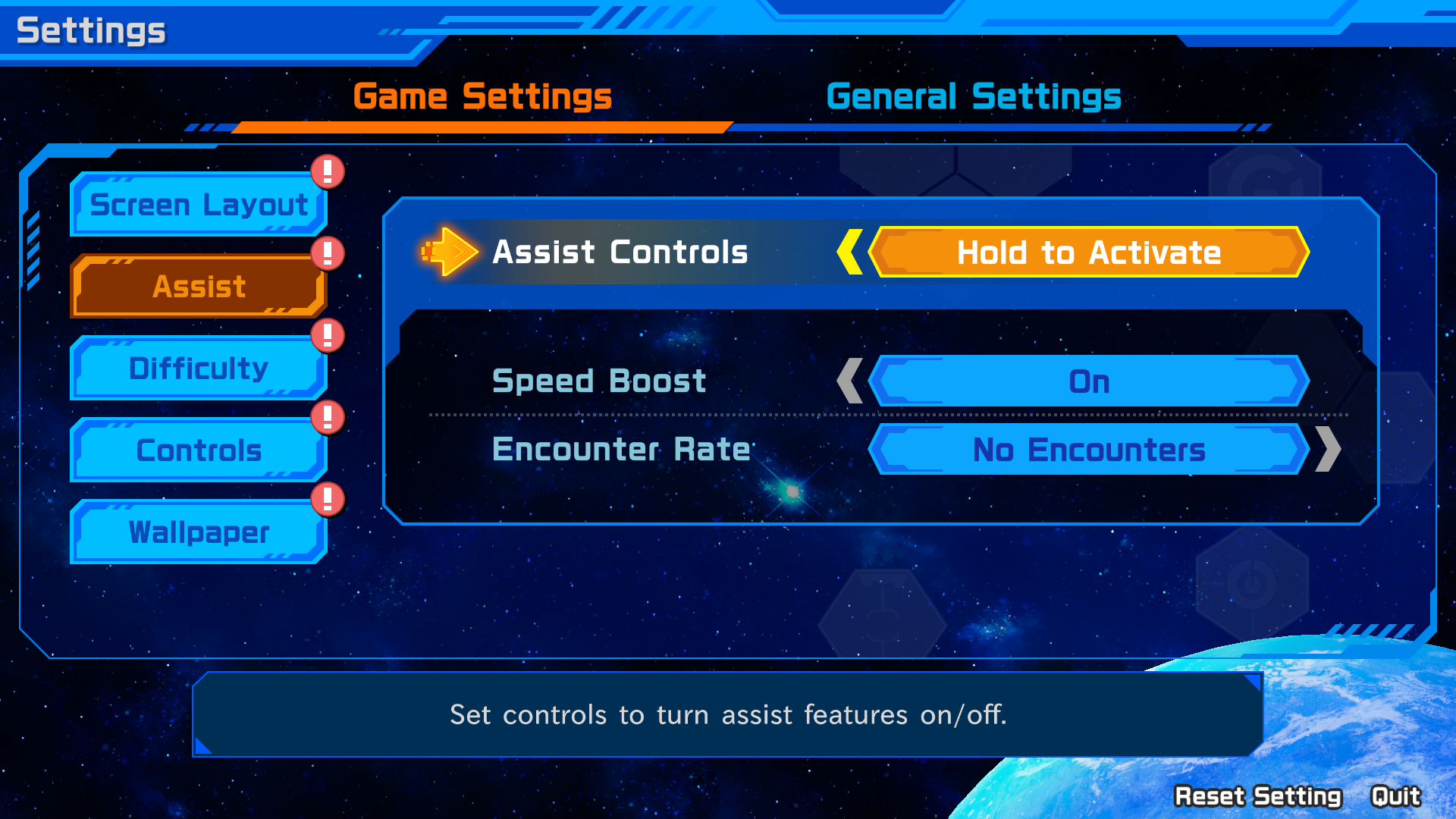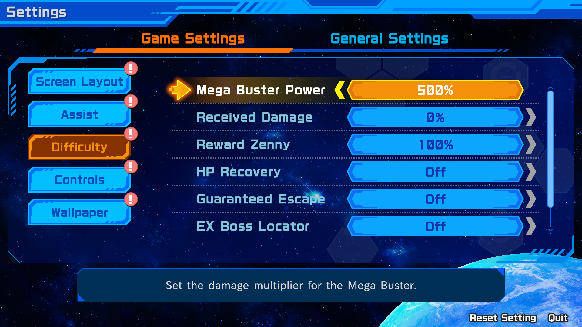 從增加洛克砲的攻擊力和被傷害減輕等的戰鬥中設定,到提升移動速度和遇敵率等的場地設定,能夠在設定中調整各種項目。
