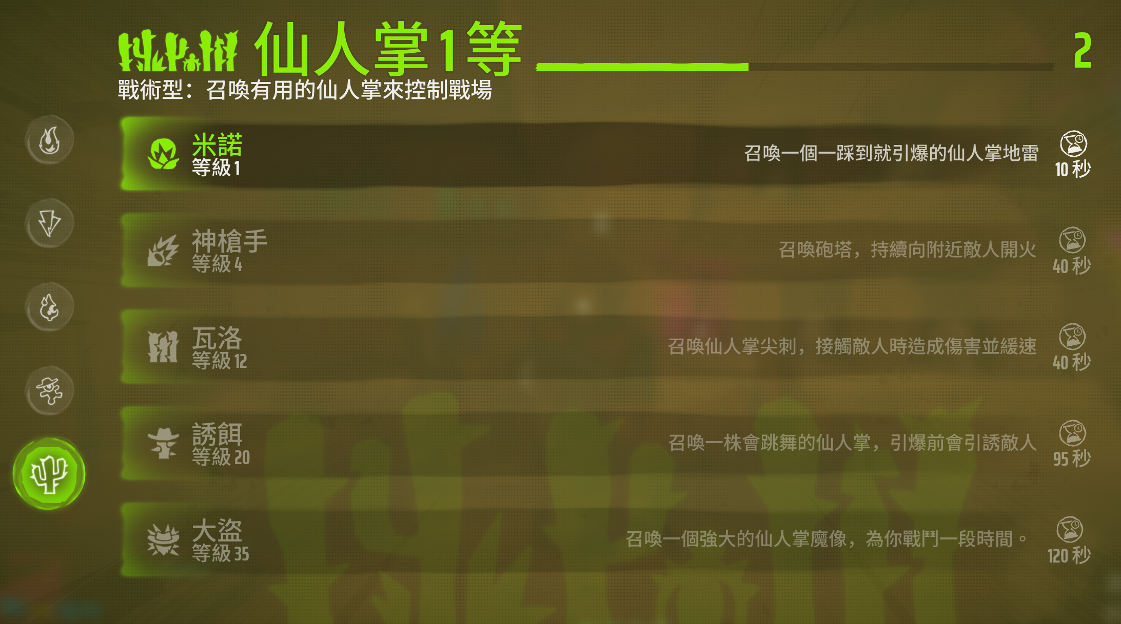 低等級的仙人掌派系法術可以生成一些讓敵人吃癟的小陷阱,至於最高等級的土匪——喔吼吼,讓這些骷髏小兵見識見識仙人掌魔像的威力吧!