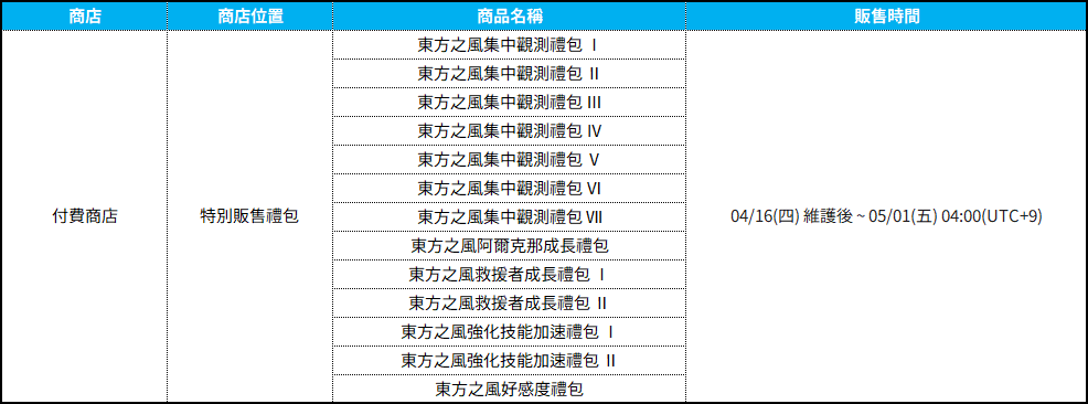 - 變更後:04/09(四) 維護完成後 ~ 04/30(四) 04:00 (UTC+9)