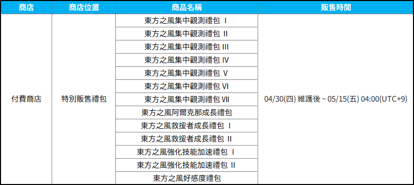 ▣ 維護時間:2026.04.30(四) 10:00~13:00 (UTC+9) (3小時)