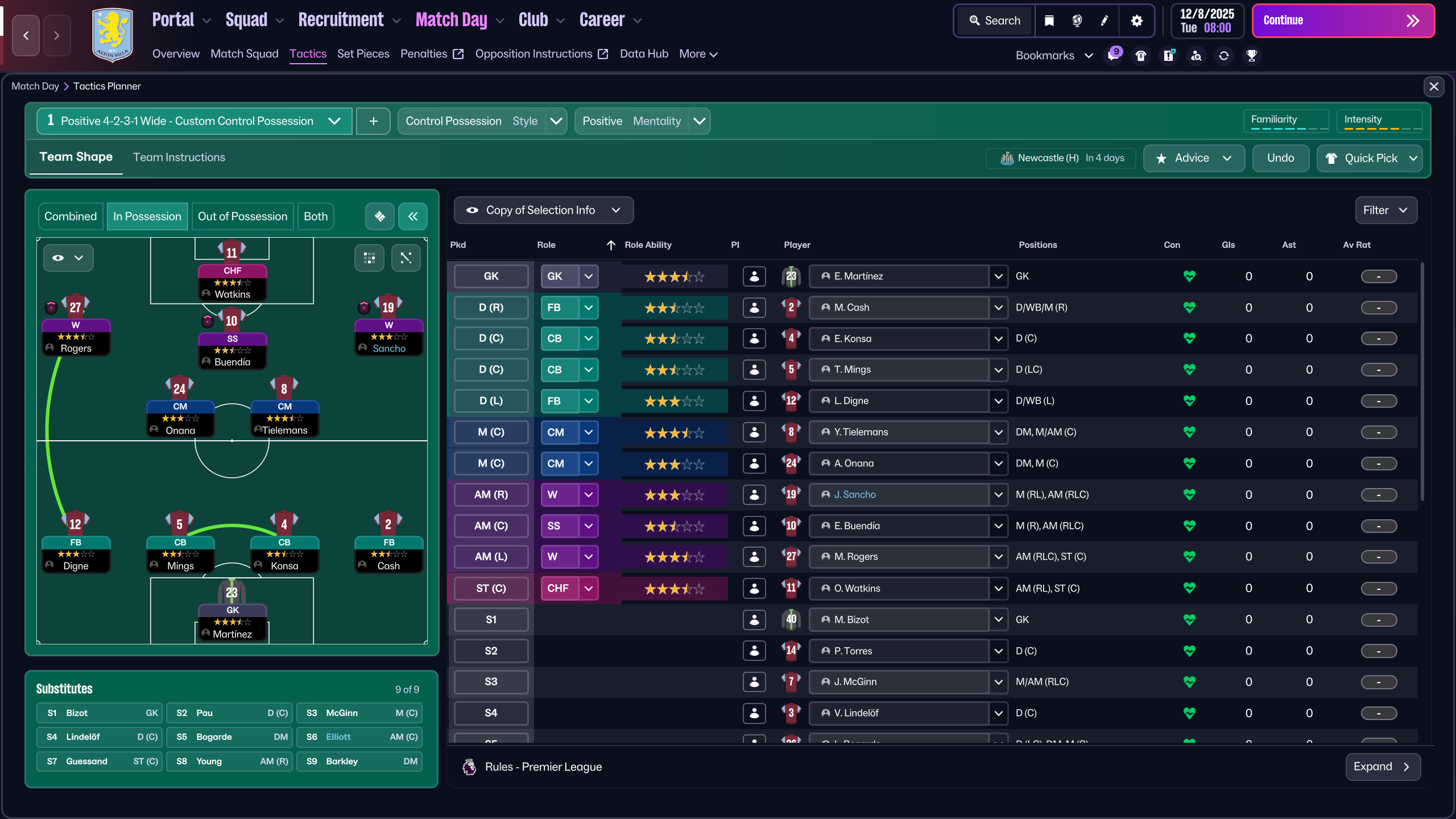 Over the course of 2025, Aston Villa had the third-best record in the Premier League and ended the year with a club record 11 consecutive wins in all competitions.