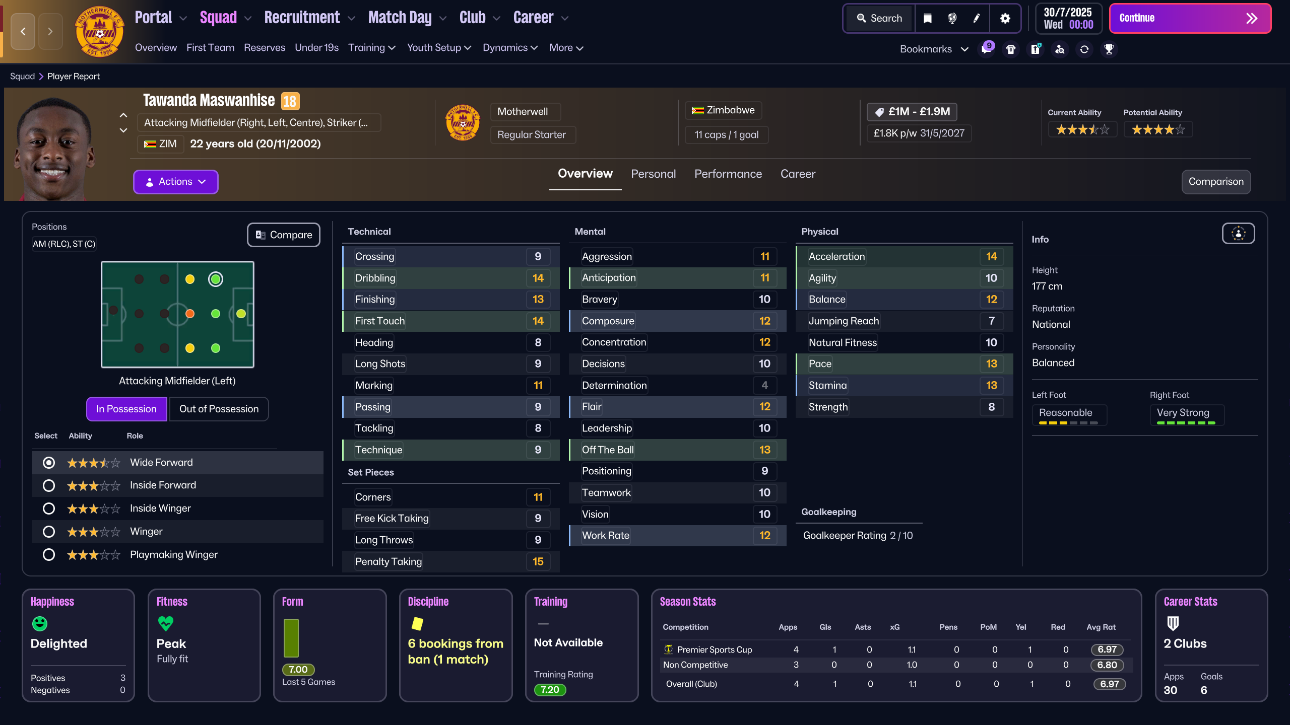 Form like that explains why their squad is one of the most upgraded in the latest FM26 update, with headline Current Ability increases for Premiership top scorer Tawanda Maswanhise and midfielder Elliot Watt.