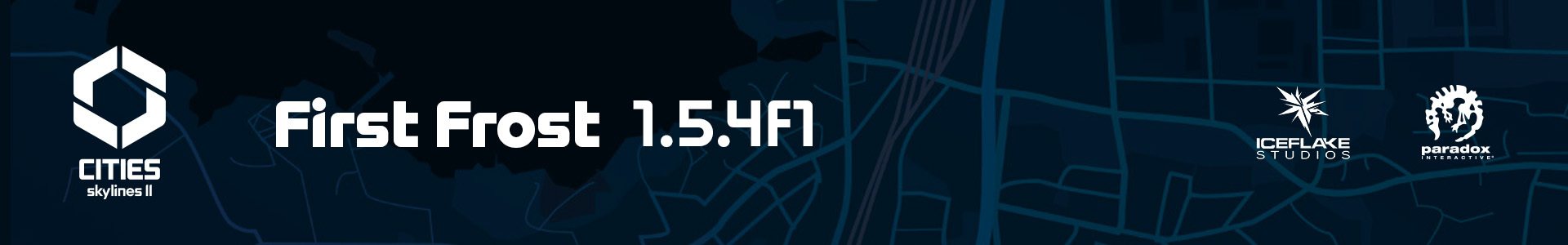 Hello Mayors!Our first patch, First Frost, has landed with the full release notes! This patch has minimal impacts on mods, and loading of old savegames is supported. Simulation changes will be applied over time in old savegames.More details about the visual changes in this patch can be found in our City Corner #1, and details about some of the other changes can be found in our City Corner #2.Gameplay:Reduced bicycle trips by 80%.Fixed time of day not taken into account when determining death in updates, causing most citizens to die between 0 and 6 o'clock.Calculate deaths 16 times per citizen per day instead of 4 to further reduce the number of citizens dying at the same time.Changed it so that in Easy Mode, citizens can actually pass away. Previously, about 80% of them never died of old age.UI:New design for the main HUD with more focus on demand bars.Some updates to UI icon visuals:New icons for roundabouts.New icons for cul-de-sacs.Replaced some of the road services icons.New 2D icon for Road Maintenance Depot.Trees/Grass icons with more natural colours.Replaced some of the info view icons.New icons for pollution types.New icons for building level, land value, household wealth & company profitability.New icon for toolbar city demand.Fixed some of the Bridges & Ports Roads to be more in line with the base game Road icons.New icons for citizen happiness emojis.Updated onboarding tutorial.Tree age preservation toggle that gives the player the ability to place and preserve specific tree asset visuals.Terraforming:More precise and less aggressive elevation tool default presets.Mode-specific brush presets and adjustment values.Fixed a typo in the Urban Cycling Initiative policy.Visual:Shadow rendering/flicker improvement for high-quality settings.Added a coloring option that gives manual control via hex codes to manage asset color schemes.Tree collider adjustments that enable visually tighter and more flexible tree placement.Line tool spacing has been adjusted, allowing trees and other line-placed objects to be placed closer together.Added snow support for decal-based lot surfaces.Temporarily removed snow rendering from vehicles.Fix terrain material discontinuity between the playable area and the surrounding terrain, allowing for a smoother blend across surfaces.Disable global illumination post-processing effect by default.Added the ability to limit the sun's maximum height per map.Fog is now controlled by weather/cloudiness (stormy/extra cloudy weather has dense fog, etc.).Changes to different season post-processing values (tropical/temperate/boreal).Balanced the amount of clouds, so that clear skies are not shown too often.Brightened nighttime lighting to improve usability.Updated night sky texture.Water settings improved in tropical maps.Misc:When starting the game for the first time, the default graphics quality settings have been optimized.Enabled autosaves by default.New camera limits added.Added an option to enable the legacy camera.Added an option to enable the legacy UI.Known Issues:Trees propped on newly placed or zoned buildings appear as saplings and do not age.