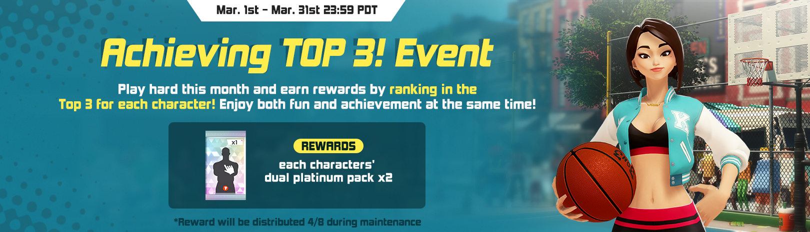 Achieve TOP 3 ranking for each character and earn a Dual Platinum Pack for that character.