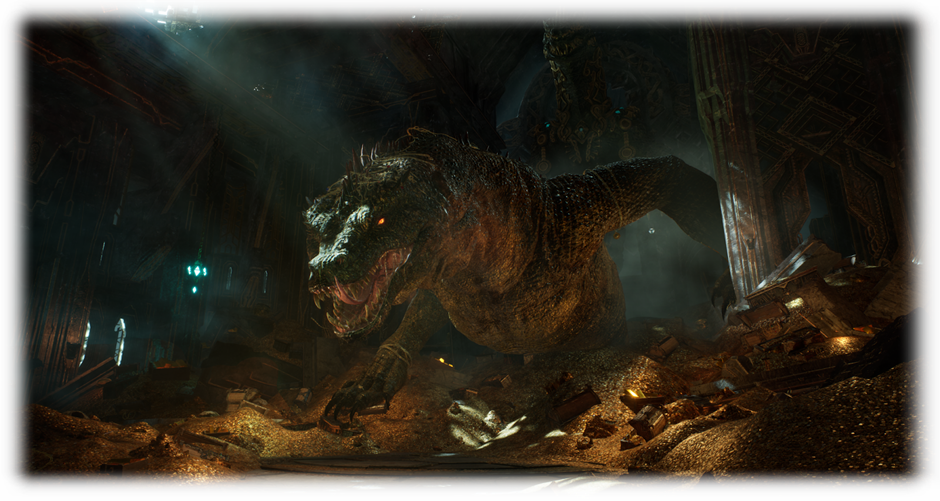 1. 法夫納正君臨於巨大的黃金寶藏堆之上等待著戰士們!請看那閃爍紅光的眼睛、銳利的牙齒,以及緊握黃金的強大前爪。光看就令人膽戰心驚的這傢伙,請成為擊敗他並奪取其傳奇寶藏與gWEMIX碎片的第1位主角吧!