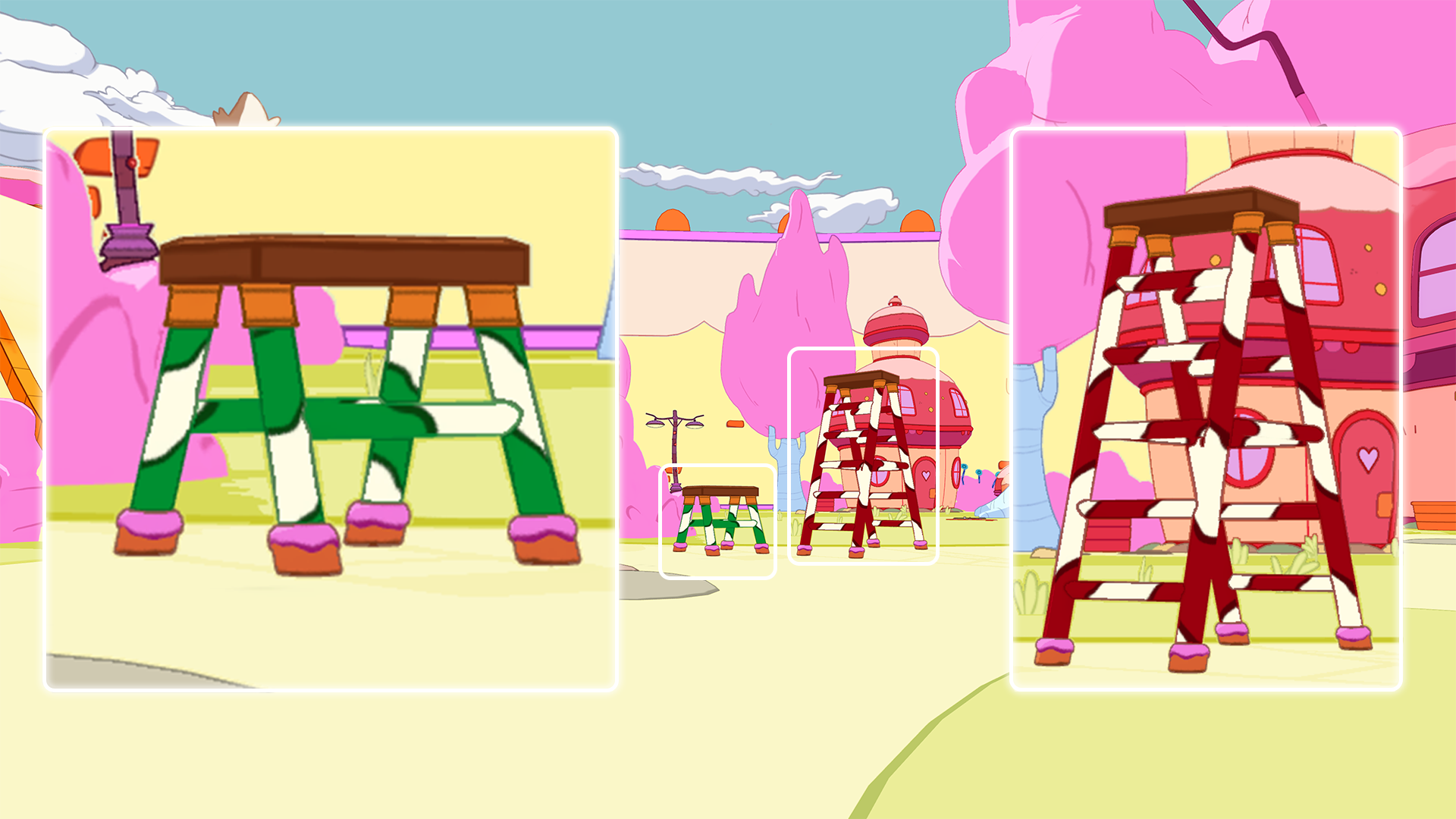Ladders, step stools and scaffolding have had an Adventure Time makeover to fit in with the pack. Candy stripes for a Candy Kingdom, sounds very fitting!