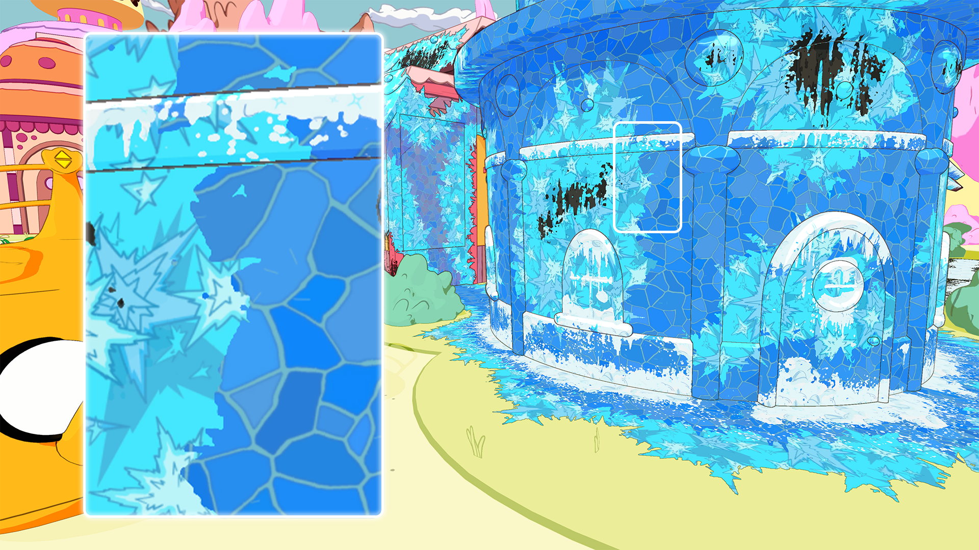 You can definitely tell the Ice King has been around here; everything has a frosty finish! This is a little bit stubborn, so time for some elbow grease, Candy Cleaners!