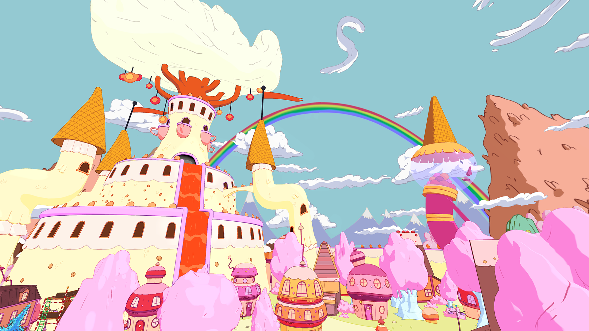 We’re going to kick off this post with a look at the vibrant work of Adventure Time. While cleaning up Pizza Sassy’s, you’ll get to enjoy the colourful backdrop of the Candy Kingdom!