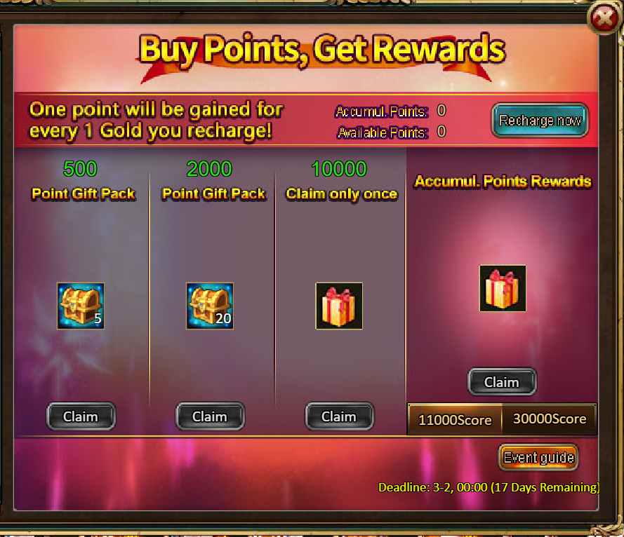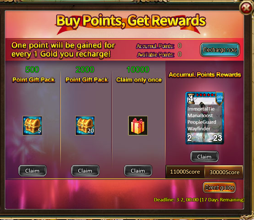 4.Buy Points, Get Rewards: 11000 - Legendary He Xiangu Chest (contains He Xiangu (Legendary)*1, Legendary YearCharge*1) *1 / 30000 - Godlike He Xiangu Chest (contains He Xiangu (Godlike)*1) *1