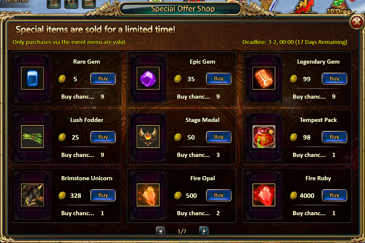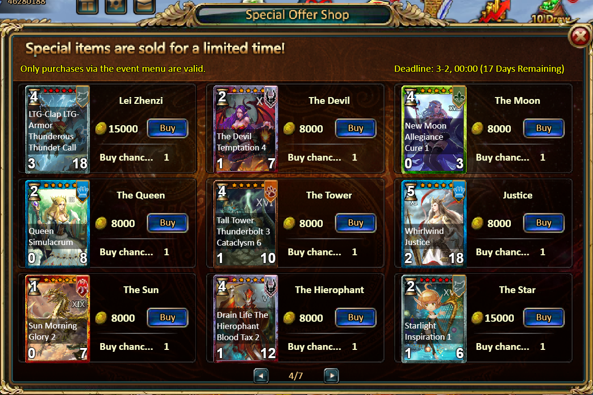 Consume 2,000 gold coins: Lunar Chest (Epic)*1, Fodder (Legendary)*10, Inferno Ticket*5