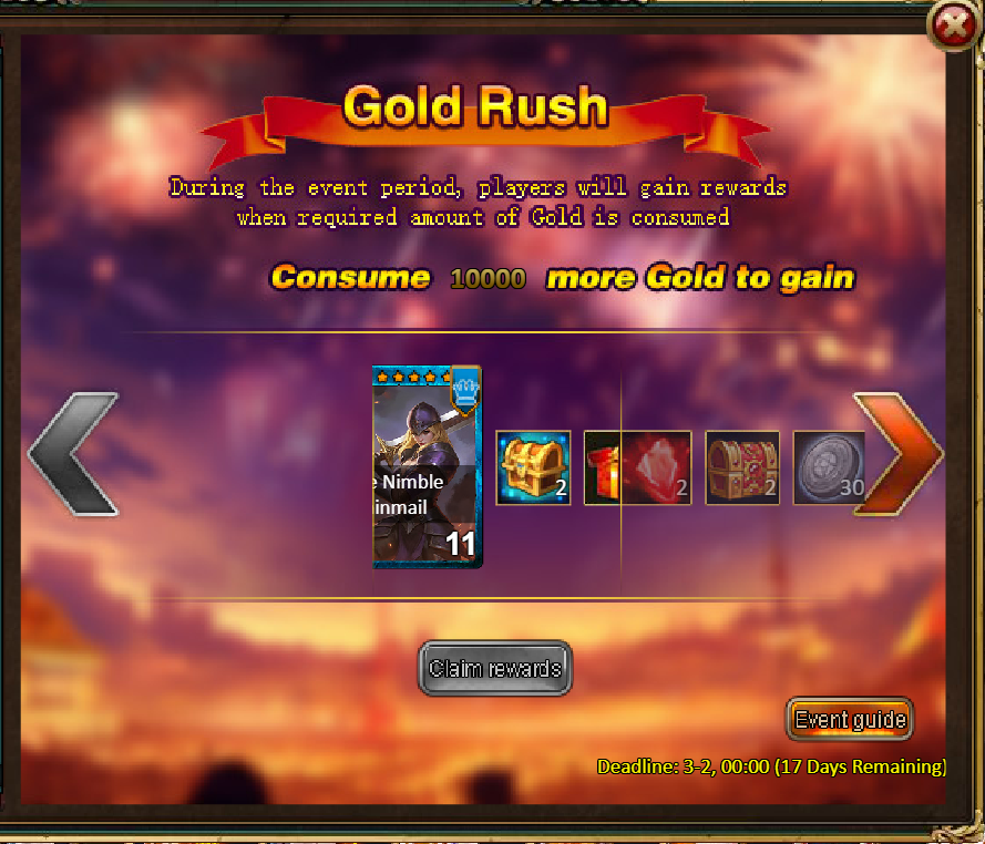 Consume 30,000 gold coins: Fire Ruby*2, Godlike Box II*2, Silver*3,000,000