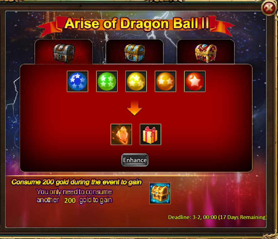 Consume 70,000 gold coins: Fire Ruby*2, Godlike Box II*4, Silver*4,000,000