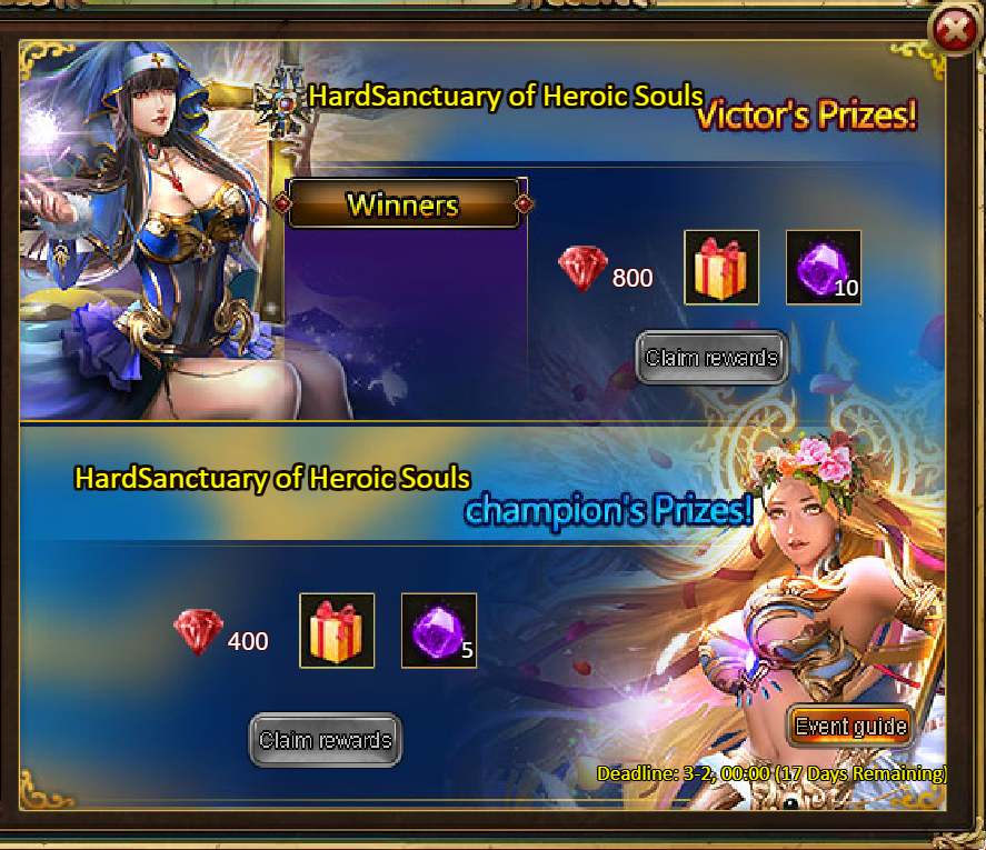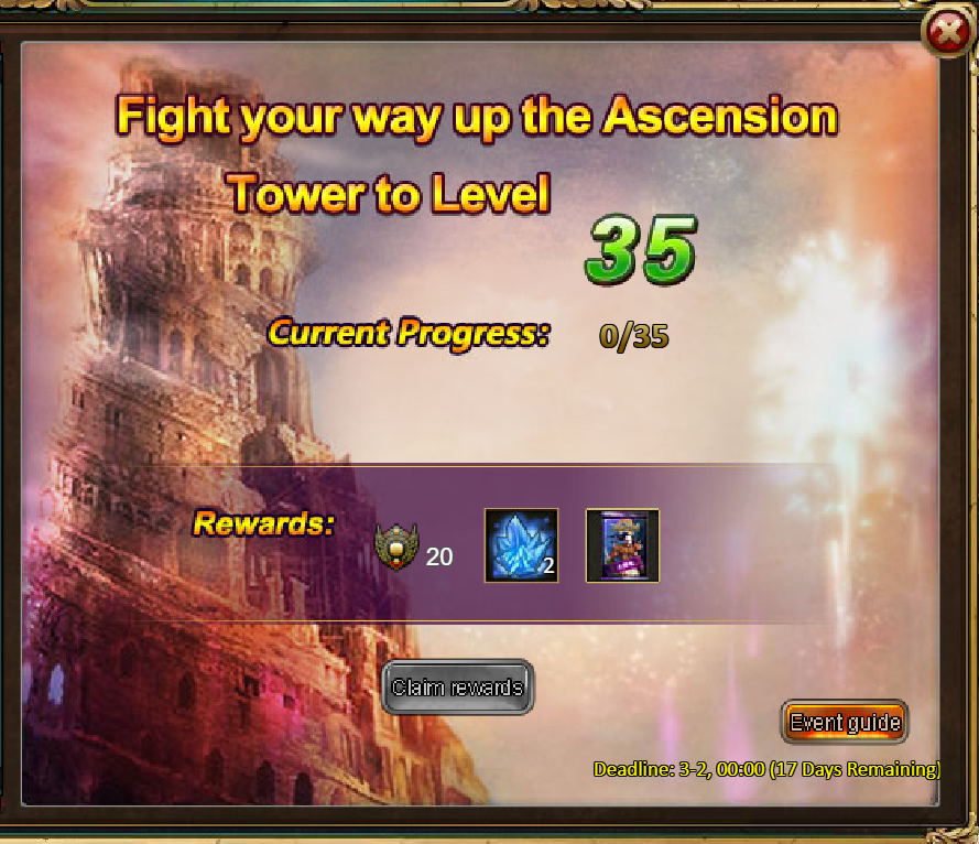 3.Recharge Rebate: Lirael Starspire (Epic)*1 / Silver*100,000 / Mystical Valley Ticket*2 / Dark Champion Potion*2 / Tome Hall Ticket*2 / Ruby Fragment*5 / Gold Tree*1
