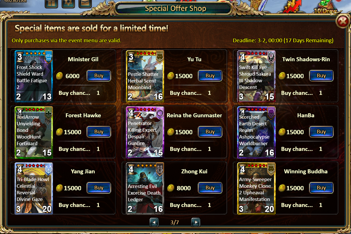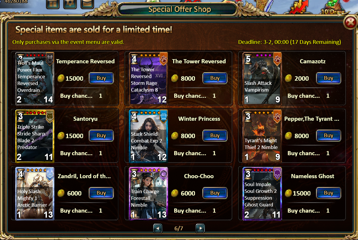 Dear Players:We will conduct a maintenance update from 16:00 to 18:00 pm on February 24, 2026, Beijing time. The specific maintenance progress will be advanced or postponed depending on the maintenance progress. Thanks for your understanding. During this period, the game will be inaccessible and we are sorry for the inconvenience caused.The following are the main contents of this maintenance:[Event]1.Supremacy: Wisdom Juju2.Red Diamond Storm: Red Diamond*2000 / Angel Box*1 / Silver*50,0003.Recharge Rebate: Lirael Starspire (Epic)*1 / Silver*100,000 / Mystical Valley Ticket*2 / Dark Champion Potion*2 / Tome Hall Ticket*2 / Ruby Fragment*5 / Gold Tree*14.Buy Points, Get Rewards: 11000 - Legendary He Xiangu Chest (contains He Xiangu (Legendary)*1, Legendary YearCharge*1) *1 / 30000 - Godlike He Xiangu Chest (contains He Xiangu (Godlike)*1) *15.Cumulative Gold Rebate: 12000 - Legendary Tornado Wizard 5982 Chest (contains Tornado Wizard 5982 (Legendary)*1, Golden Hammer*40) *1 / 30000 - Godlike Tornado Wizard 5982 Chest (contains Tornado Wizard 5982 (Godlike)*1, Golden Hammer*60) *16.Value Rebates7.Directory of Myths (Xuanwu)8.Event of Football9.Gold Rush (Weekly Event)Consume 10,000 gold coins: Vanguard·Foe-Breaker (Legendary)*1, Solar Chest (Legendary)*2. Pet Pleasure*1Consume 30,000 gold coins: Fire Ruby*2, Godlike Box II*2, Silver*3,000,000Consume 50,000 gold coins: Black Opal*1, Solar Chest (Legendary)*4, Pet Pleasure*5Consume 70,000 gold coins: Fire Ruby*2, Godlike Box II*4, Silver*4,000,000Consume 90,000 gold coins: Black Opal*1, Godlike Box II*6, Solar Chest (Legendary)*6, Silver*5,000,00010.Spend Daily, Get RewardsConsume 100 gold coins: Fusion Catalyst*1, Silver*10,000, Tower Ticket*3Consume 500 gold coins: Human Box (Rare)*1, Fusion Catalyst*2, Inferno Ticket*2Consume 1,000 gold coins: Mystical Valley Ticket*2, Angel Box (Rare)*2, Firecracker Rune Formula (Epic)*2Consume 2,000 gold coins: Lunar Chest (Epic)*1, Fodder (Legendary)*10, Pet Snack*1Consume 5,000 gold coins: Mystical Valley Ticket*3, Unbound Skill Tome Shard (Good)*10, Fire Opal*1Consume 10,000 gold coins: Fire Ruby*1, Advanced Fusion Catalyst*1, Silver*1,000,00011.Pack (Limited Time Event) - Booster Bonanza20 packs of Exclusive Pack II - Fire Ruby*1 / Pet Pleasure*2 / Silver*1,000,00020 packs of Master Skill Pack VI - Master Skill Pack VI*10 / Silver*1,000,00010 packs of Specialist Pack V - Calamity Dragon Fragment*40 / Pet Feast*2 / Unbound Skill Tome Shard (Good)*520 packs of Cryptic Undead Pack IV - Opal Fragment*9 / Silver*500,000 / Legendary Box*210 packs of Elite Pack - Class Selection Crystal*3 / Silver*80,00012.Mystical Valley13.Hero Coming14.Ascension Tower15.Special Offer ShopSee the pictures for details. The event content is subject to the game content. The official has the final right of interpretation.