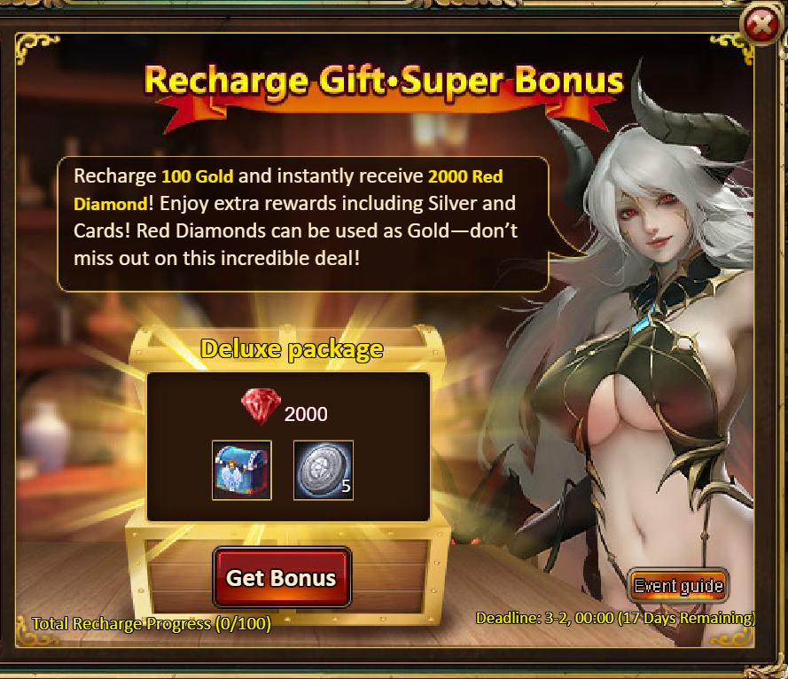 2.Red Diamond Storm: Red Diamond*2000 / Angel Box*1 / Silver*50,000