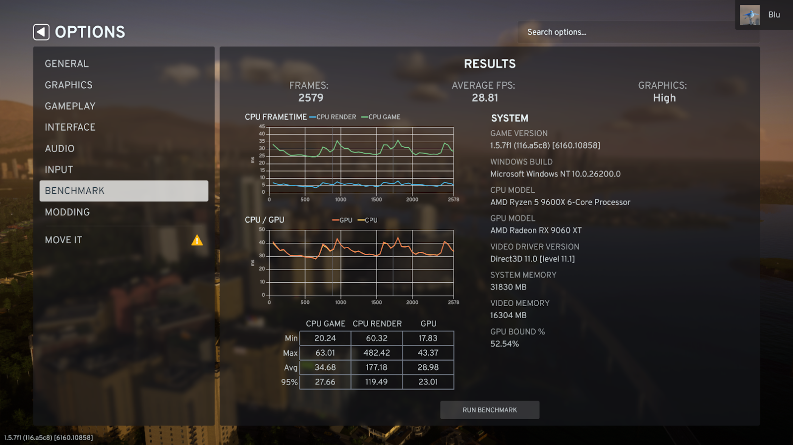 As mentioned in City Corner #4, we have now added a Benchmark tool into the game as a first step towards improving the performance. This is an in-game testing tool, which allows you to check your performance between patches and how the updates affect the performance on your computer. The tool also helps us in gathering data for the future, and lets us know which areas we need to put more focus on. The benchmark tool is accessible through the Main Menu options, or by adding a new launch parameter -benchmark.