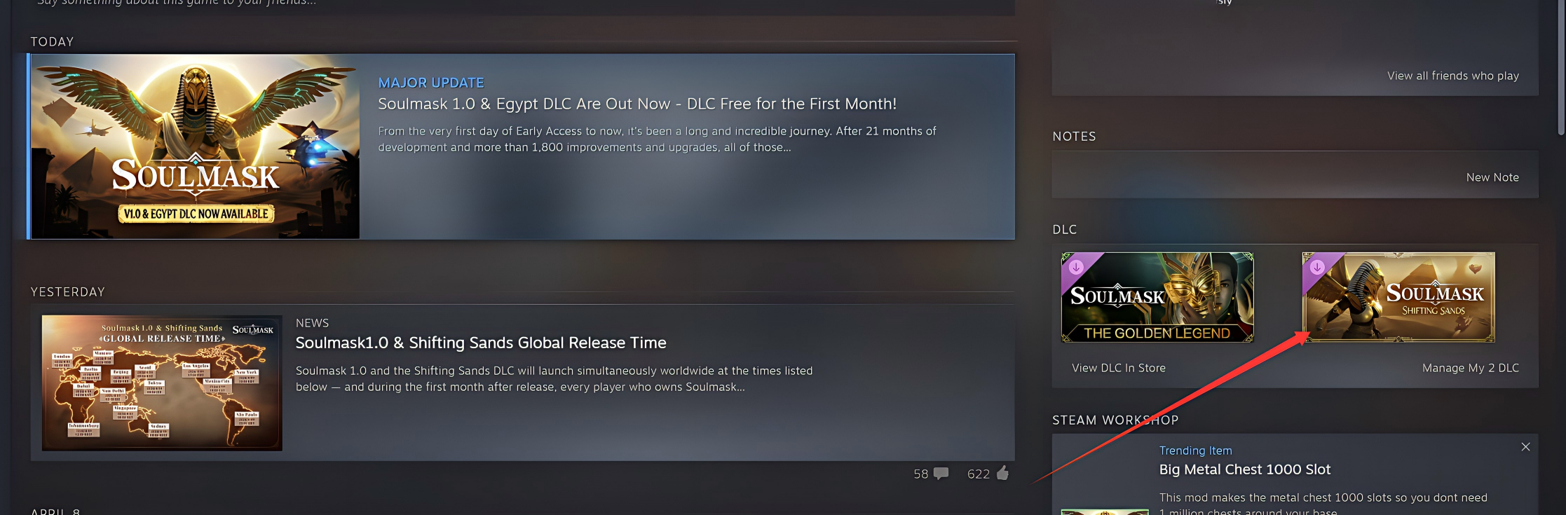 Check the DLC section to see whether the icon for Soulmask: Shifting Sands is displayed.