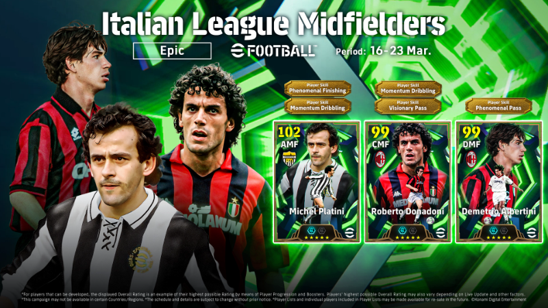 In addition to the 3 Epic players and 8 Highlight players listed below, 139 other currently active players will make an appearance in the Special Player List.Epic players reflect a standout performance they put out during a specific season during their career. They also feature unique card designs stylised after photos taken during the season they are based on.Highlight players have different stats compared to their Standard counterparts, and they can also be further developed.Sign these footballing greats and make your team that much stronger!
